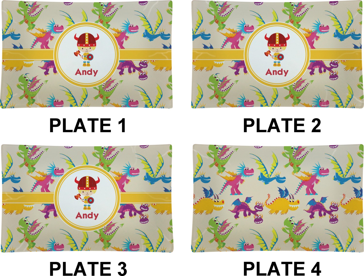 A white outlined yellow band with a yellow circle label highlights the little dragon slayer. Change the hair color to match your little guy and add his name to make this a fun design for all dragon lovers.