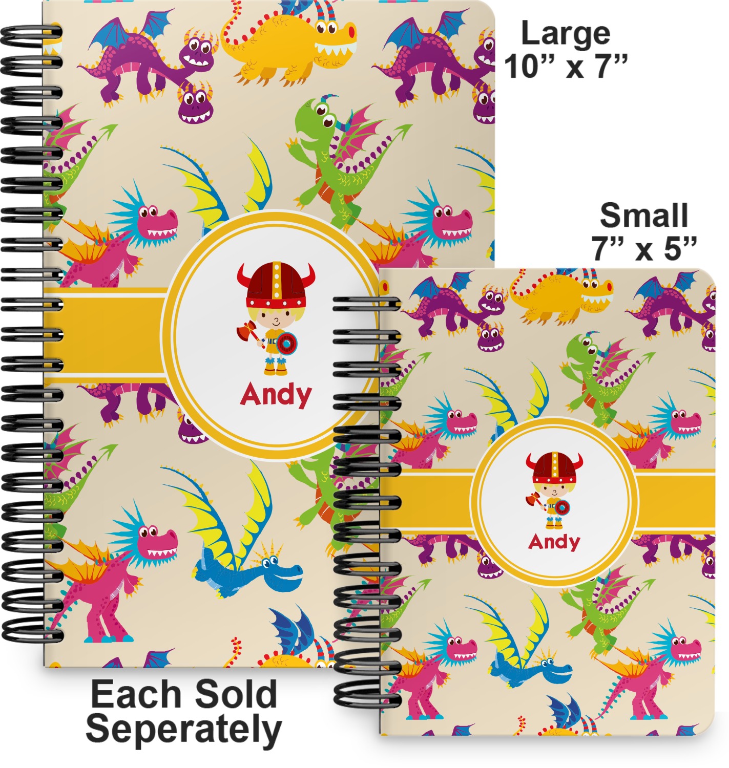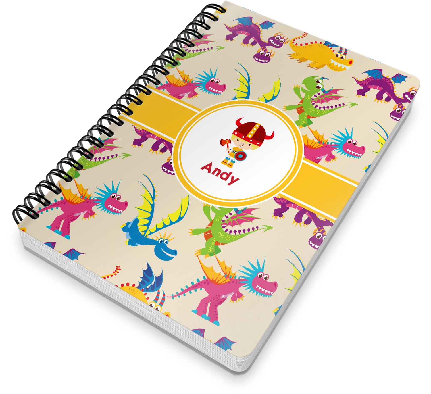 This spiral notebook includes 75 sheets of thick, ruled paper. The front and back of this custom notebook is made of a robust, laminate, plastic covering. We print your personalization on these two panels, underneath a glossy finish, which emphasizes the colors of your design. The two panels and the sheets of paper are held together by a sturdy, black coil. The paper within your bound notebook is perforated for easy, clean tearing.