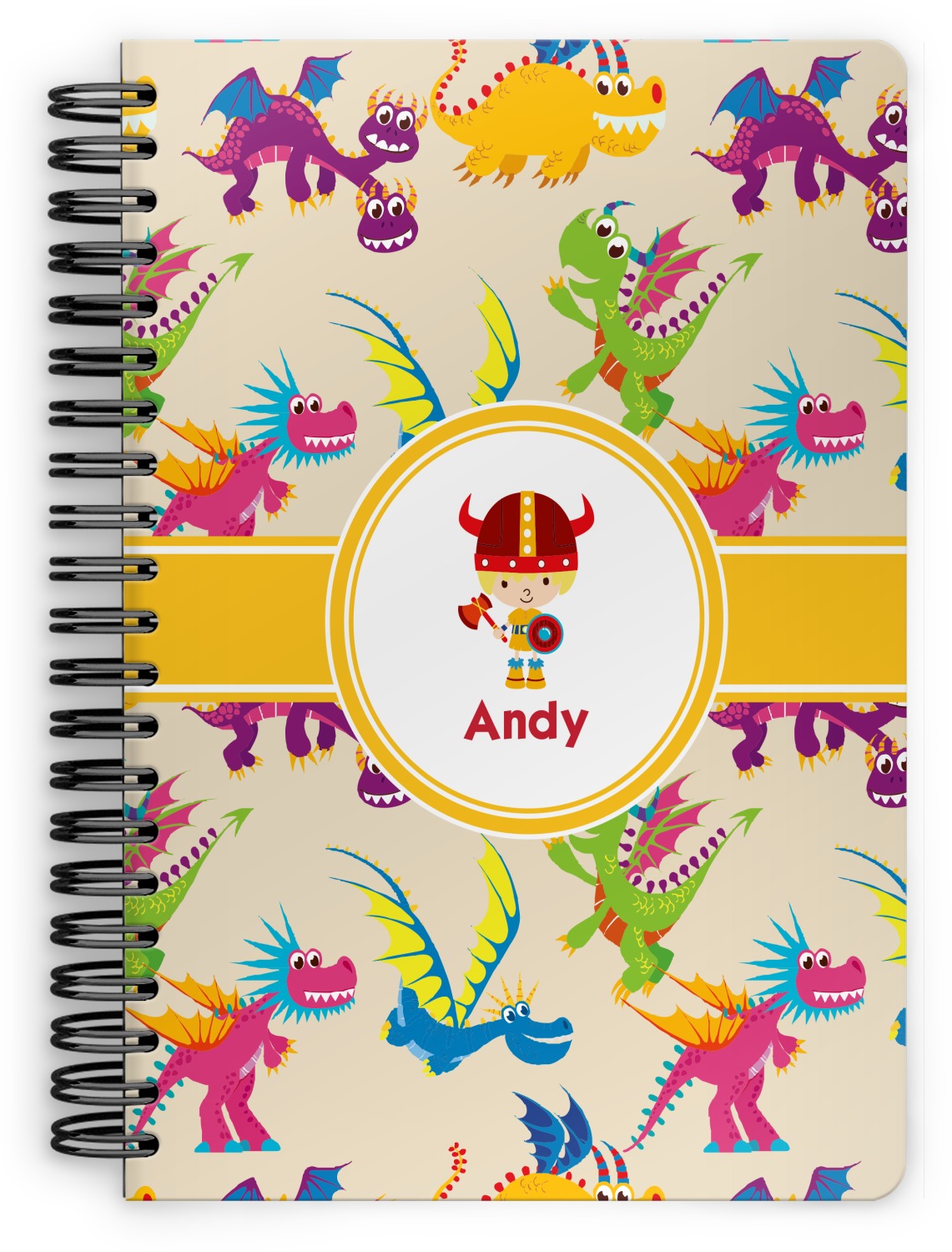 A white outlined yellow band with a yellow circle label highlights the little dragon slayer. Change the hair color to match your little guy and add his name to make this a fun design for all dragon lovers.