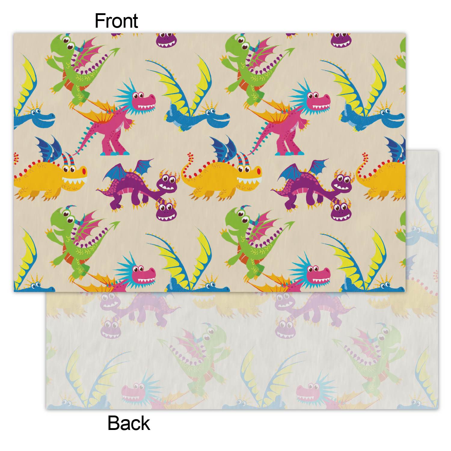 Dragon slayers unite! This little guy is going to be busy conquering all these dragons this print has to offer. Blue, green, yellow, purple, and even pink dragons of all shapes and sizes are the highlight of this design. With the variety of colors that pop on the black background decorating with be a breeze.