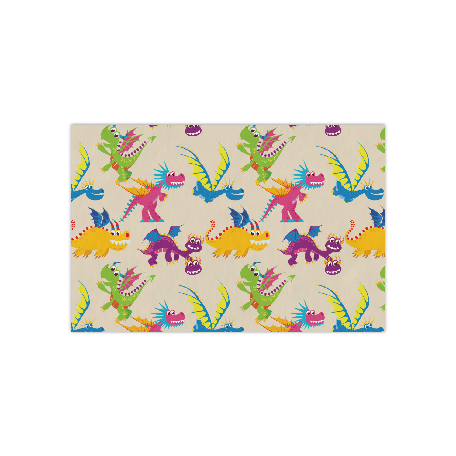 Dragon slayers unite! This little guy is going to be busy conquering all these dragons this print has to offer. Blue, green, yellow, purple, and even pink dragons of all shapes and sizes are the highlight of this design. With the variety of colors that pop on the black background decorating with be a breeze.