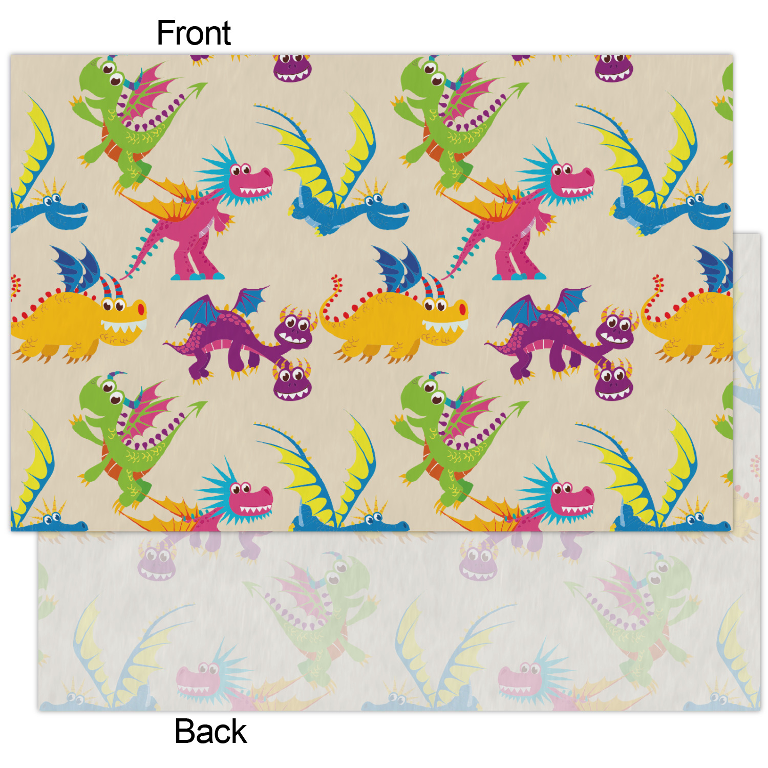 Dragon slayers unite! This little guy is going to be busy conquering all these dragons this print has to offer. Blue, green, yellow, purple, and even pink dragons of all shapes and sizes are the highlight of this design. With the variety of colors that pop on the black background decorating with be a breeze.