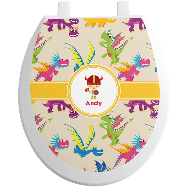 A white outlined yellow band with a yellow circle label highlights the little dragon slayer. Change the hair color to match your little guy and add his name to make this a fun design for all dragon lovers.