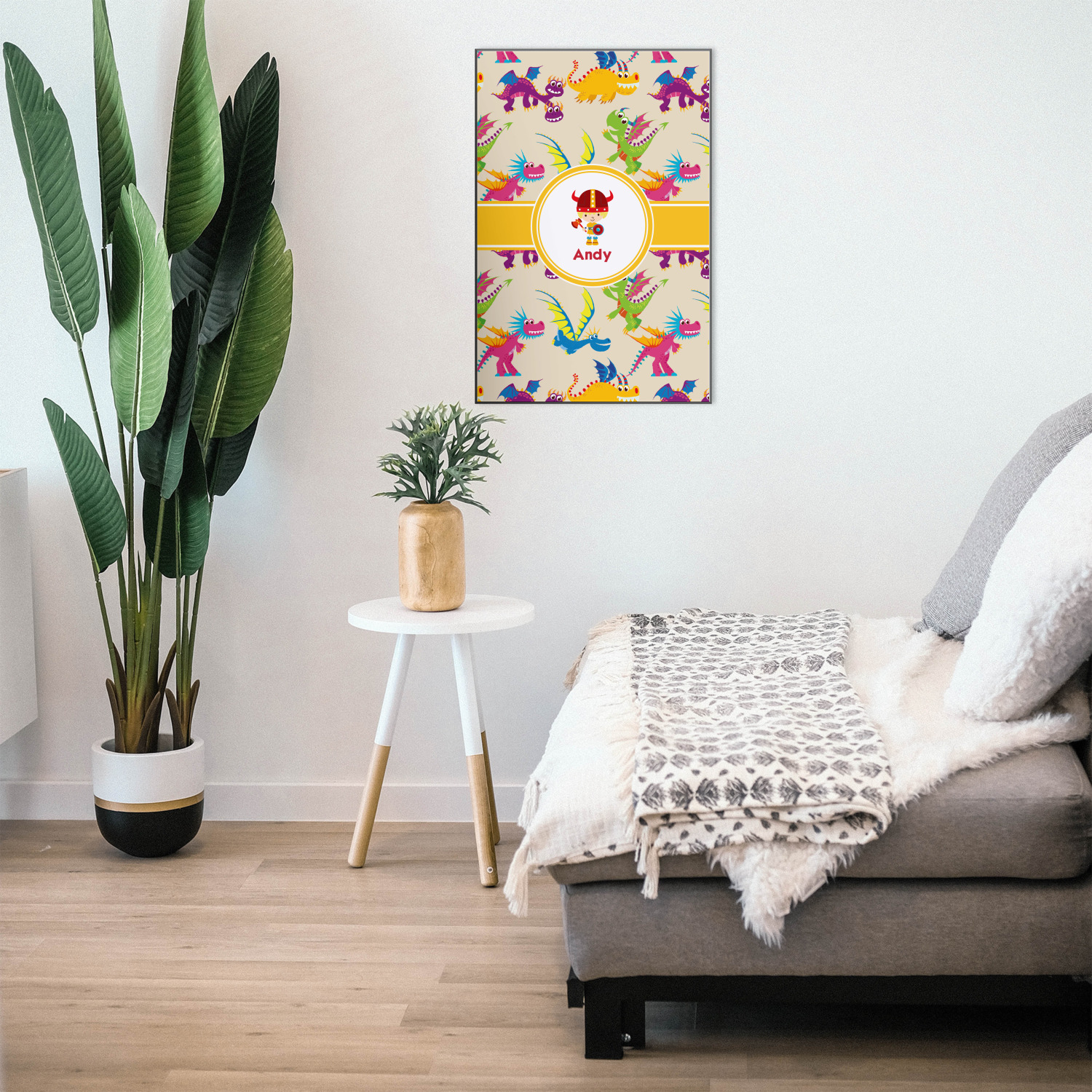 A white outlined yellow band with a yellow circle label highlights the little dragon slayer. Change the hair color to match your little guy and add his name to make this a fun design for all dragon lovers.