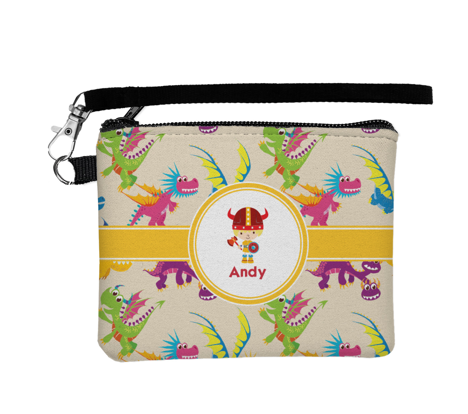 A white outlined yellow band with a yellow circle label highlights the little dragon slayer. Change the hair color to match your little guy and add his name to make this a fun design for all dragon lovers.