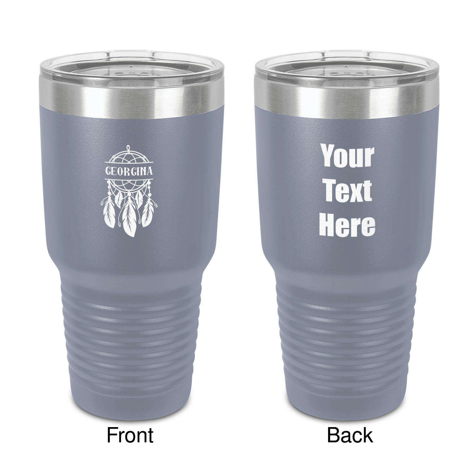 With our personalized 30 oz double wall stainless steel tumblers, you'll never have to settle for a plain, boring tumbler again! These tumblers will be a wonderful addition to your drinkware collection and will make those long commutes much brighter. Personalize one for yourself, or give these personalized tumblers as a gift to relatives, friends, or coworkers!