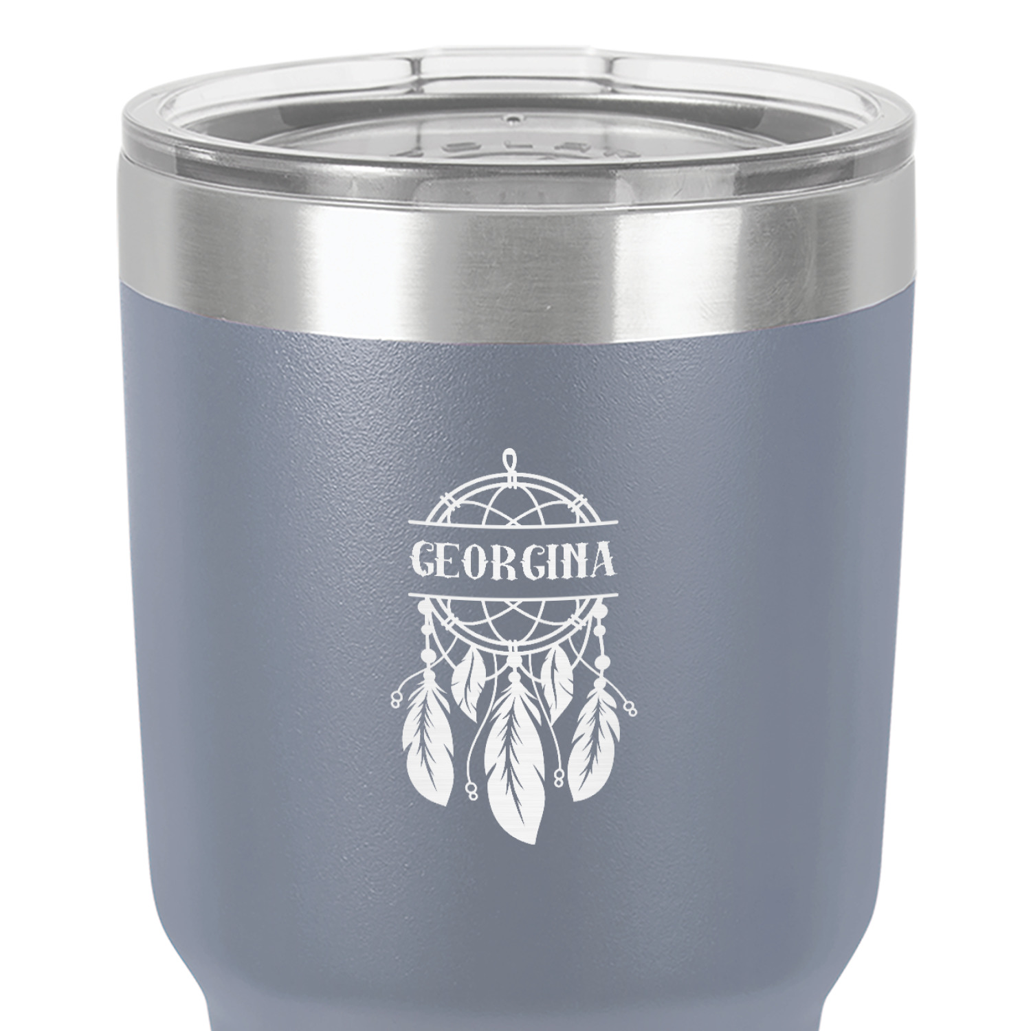 With our personalized 30 oz double wall stainless steel tumblers, you'll never have to settle for a plain, boring tumbler again! These tumblers will be a wonderful addition to your drinkware collection and will make those long commutes much brighter. Personalize one for yourself, or give these personalized tumblers as a gift to relatives, friends, or coworkers!