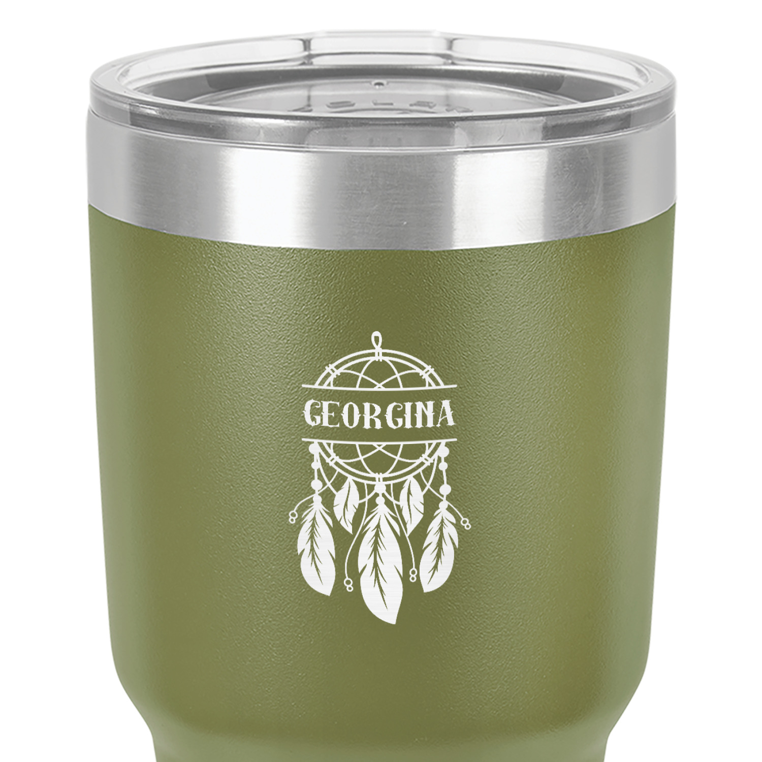 With our personalized 30 oz double wall stainless steel tumblers, you'll never have to settle for a plain, boring tumbler again! These tumblers will be a wonderful addition to your drinkware collection and will make those long commutes much brighter. Personalize one for yourself, or give these personalized tumblers as a gift to relatives, friends, or coworkers!