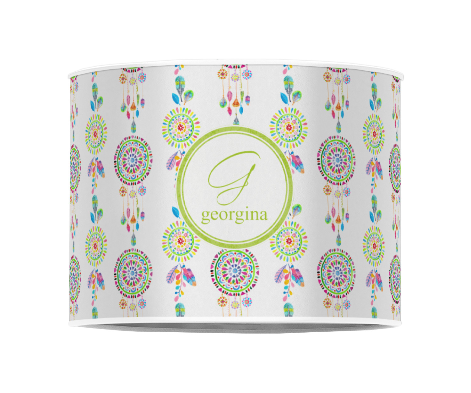 Our personalized drum lamp shades are available in 2 different materials: Poly-film or fabric. Poly-film lamp shades come with the option of white or black border trims to best match your customized design. Fabric lamp shades are finished with a rolled edge for a clean modern look.