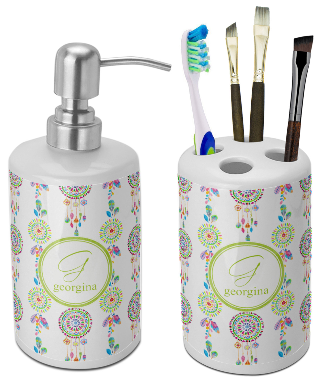 | Product Dimensions | Ceramic Soap / Lotion Dispenser (4" x 3" x 7") Ceramic Toothbrush Holder (3" x 3" x 4.5") |