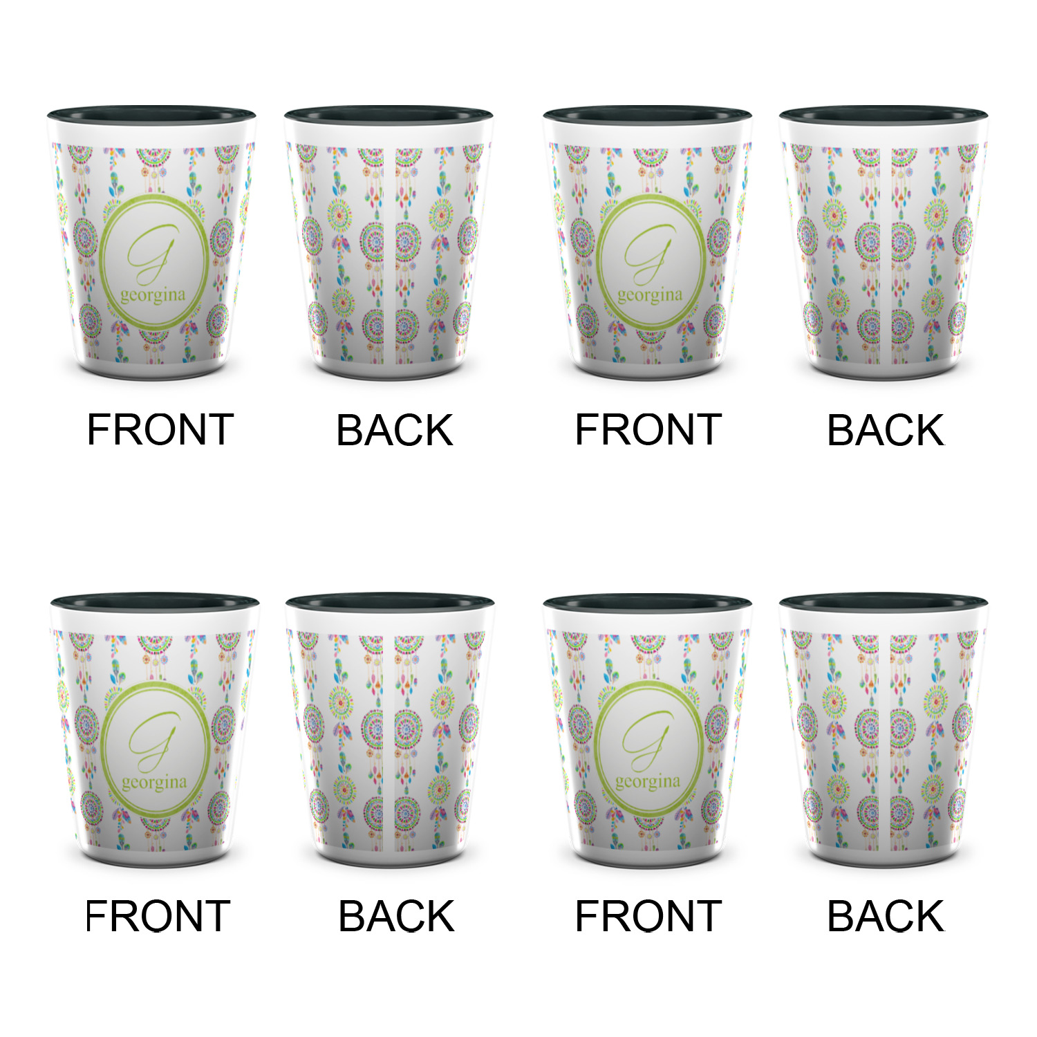Made from ceramic these shot glasses are printed in full color with the design of your choice. These are a standard 1.5oz size and stand 2.25" tall. Available in a full white ceramic or a two-tone with a black color inside the shot glass. Buy a single or a set of 4, all of which can be designed separately to get you just what you want and need.
