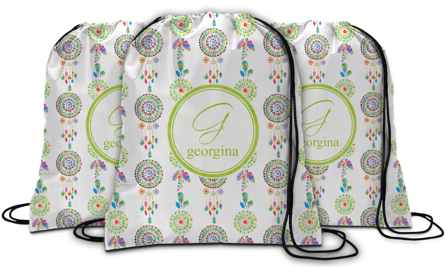 Our drawstring backpacks are custom made for you here in the USA. We offer a great selection of cinch bags and it is your choice to personalize them with the text of your choice, in the format of your choice i.e. monogram, name, initial, name & initial. We offer many different patterns and prints; and many of the patterns are available in 45 different colors.