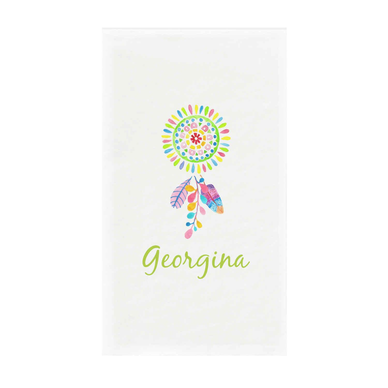 Dream catchers are considered to be a protective charm by native americans; they are supposed to filter our all the bad dreams and only allow good thought to enter our minds. The beautiful dream catcher design was painted with watercolors in beautiful jewel tone colors on a clean crisp white background.