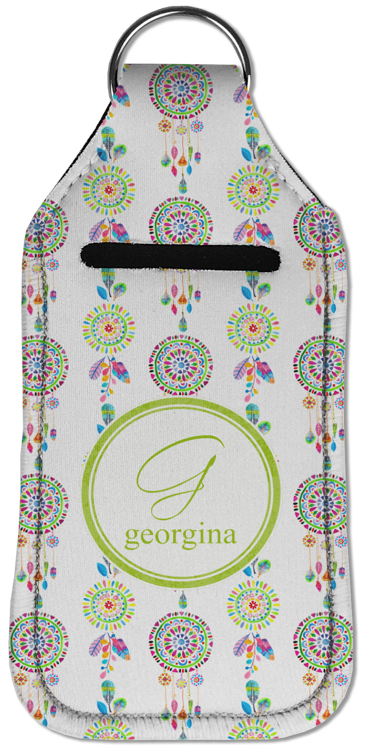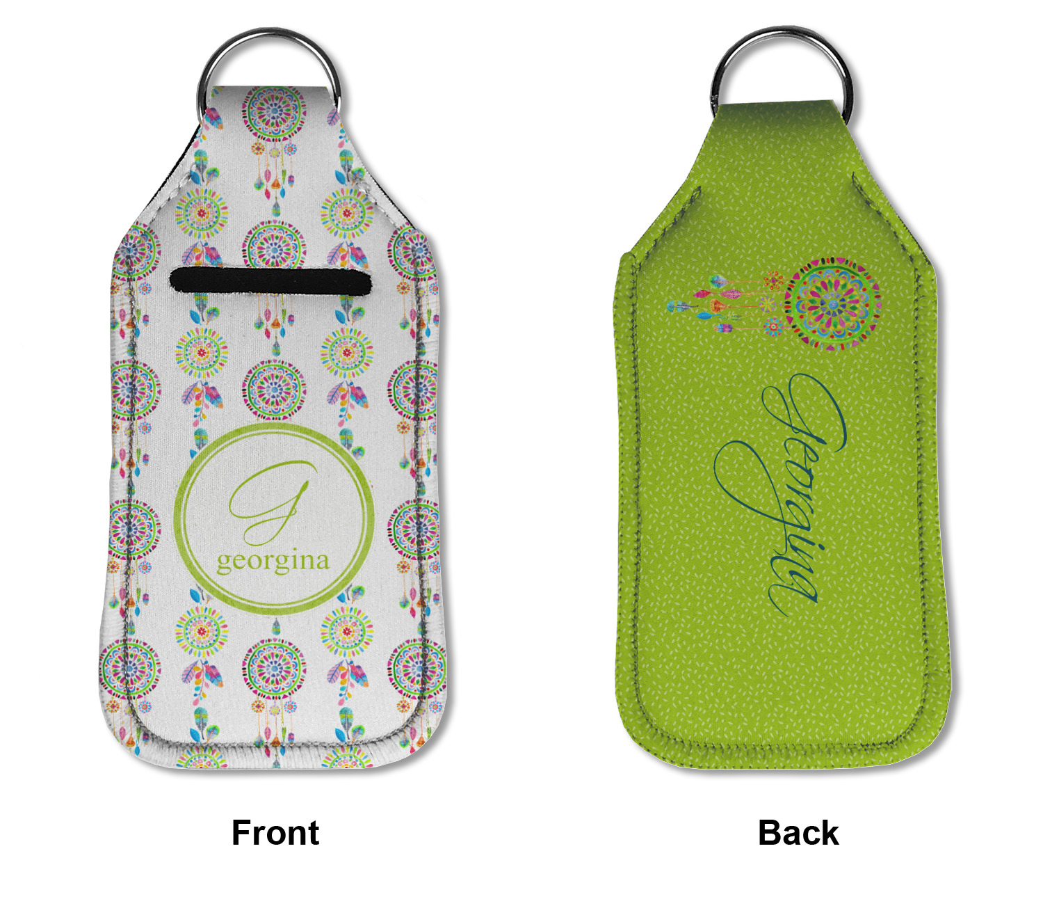 Each hand sanitizer holder comes with its own empty travel-sized, refillable hand sanitizer sure to fit snug in your customized sanitizer case! Our hand sanitizer cases are a durable, yet soft neoprene material sure to last any daily activities or travel agenda. Customize and personalize a hand sanitizer bottle holder with one of our two sizes - small (4.25" x 2.25") or large (5.5" x 2.5"). Each travel sanitizer holder comes with a keyring for attachment on bags, keys, or more!