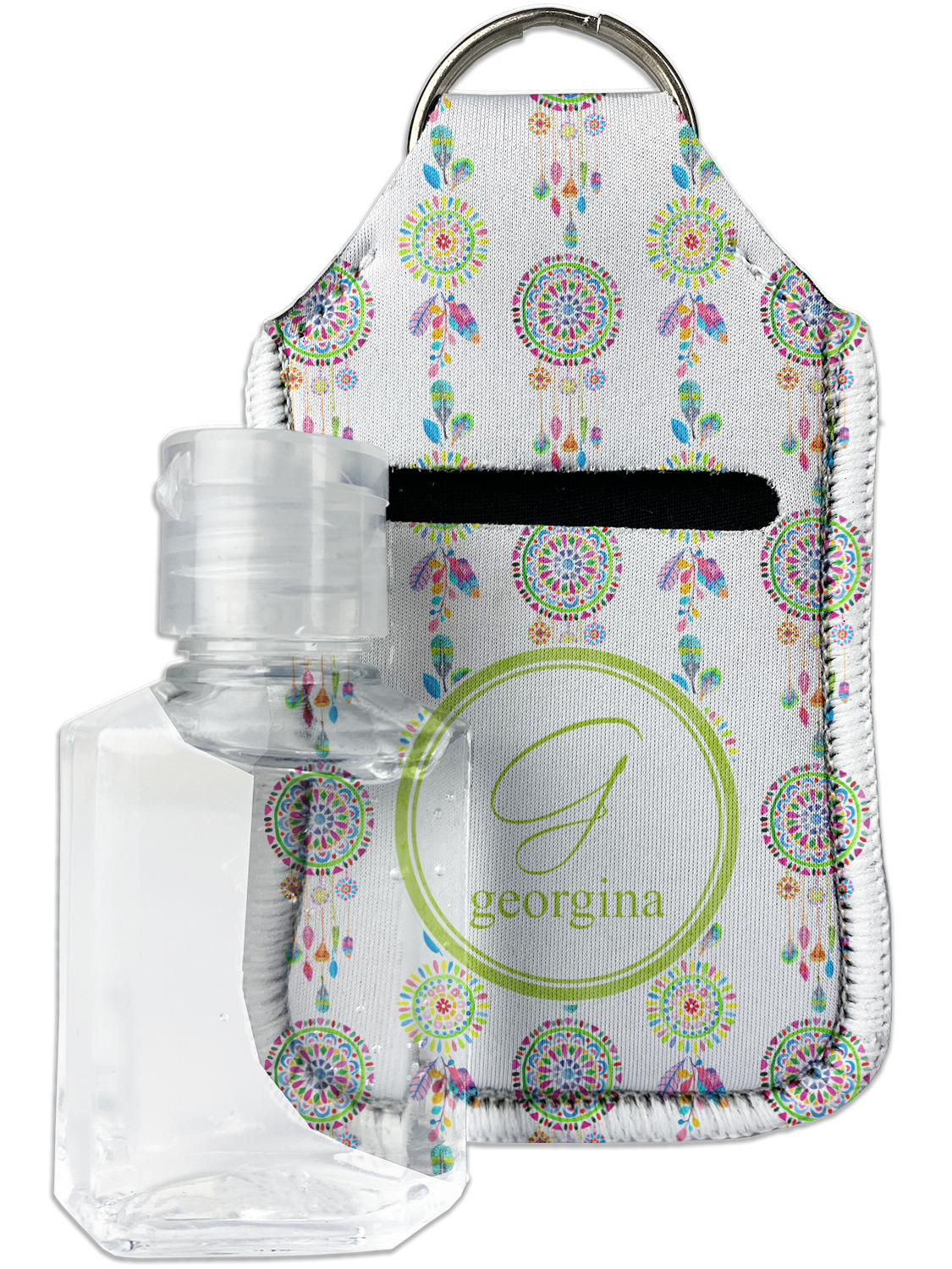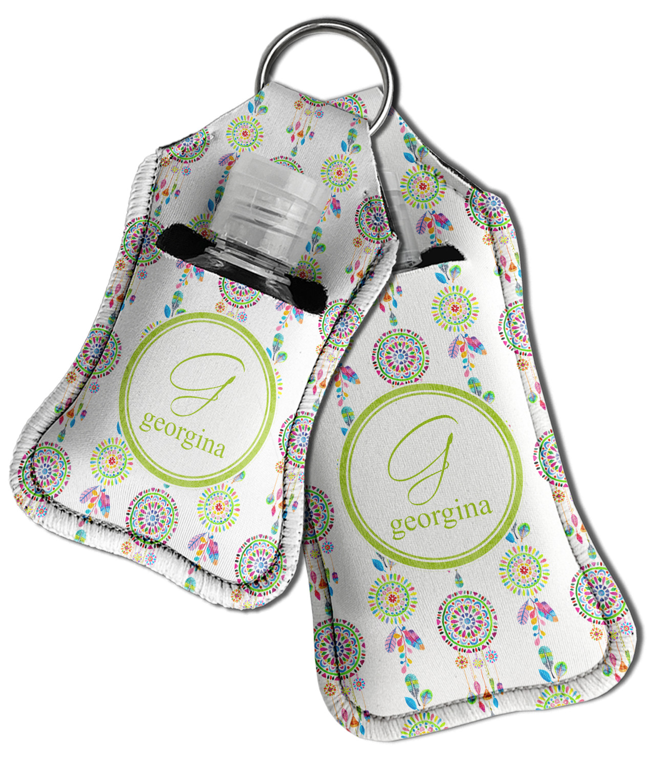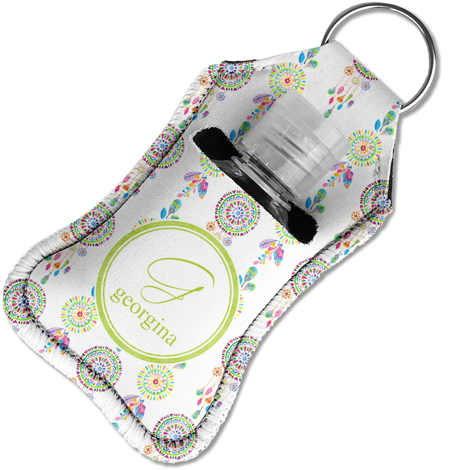 Each hand sanitizer holder comes with its own empty travel-sized, refillable hand sanitizer sure to fit snug in your customized sanitizer case! Our hand sanitizer cases are a durable, yet soft neoprene material sure to last any daily activities or travel agenda. Customize and personalize a hand sanitizer bottle holder with one of our two sizes - small (4.25" x 2.25") or large (5.5" x 2.5"). Each travel sanitizer holder comes with a keyring for attachment on bags, keys, or more!