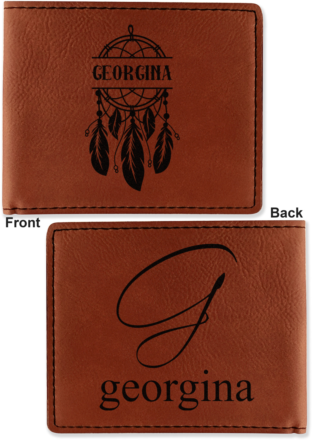 Your bifold wallet will be personalized by laser engraving, which will be a black color on the wallet. Choose a graphic, text, or monogram to personalize your wallet. There are thousands of choices in our design center.