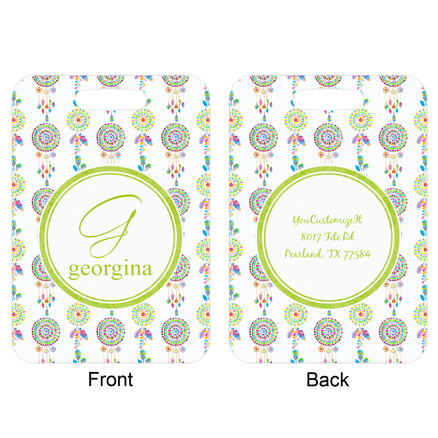 These metal luggage tags are printed on both sides; the front is printed with the design of your choice - and can be personalized with your name, name & initial or your monogram. The back can have as much or as little of your contact information as you desire - your name, your address, city, zip & state, you can also include your phone number and email address. Customize it exactly the way you want it!