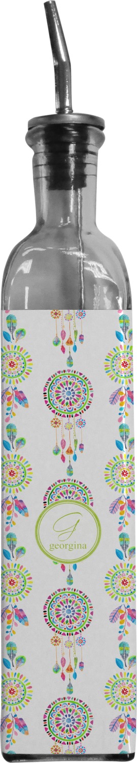Made from recycled glass in Spain, these oil bottles have a classic, delicate look, and are accompanied by a metal spout for controlled pouring. Each bottle holds approximately 13 ounces and measures at 12 by 2 inches. We customize your glass oil bottle by applying your personalized design on the front and sides, using an adhesive. Our customizable stickers are made from high quality, gloss vinyl and are printed with waterproof, eco-solvent inks. These pieces are machine cut for accuracy and symmetry. The result is a robust, waterproof, adhesive decal that will not fade or deteriorate with time.