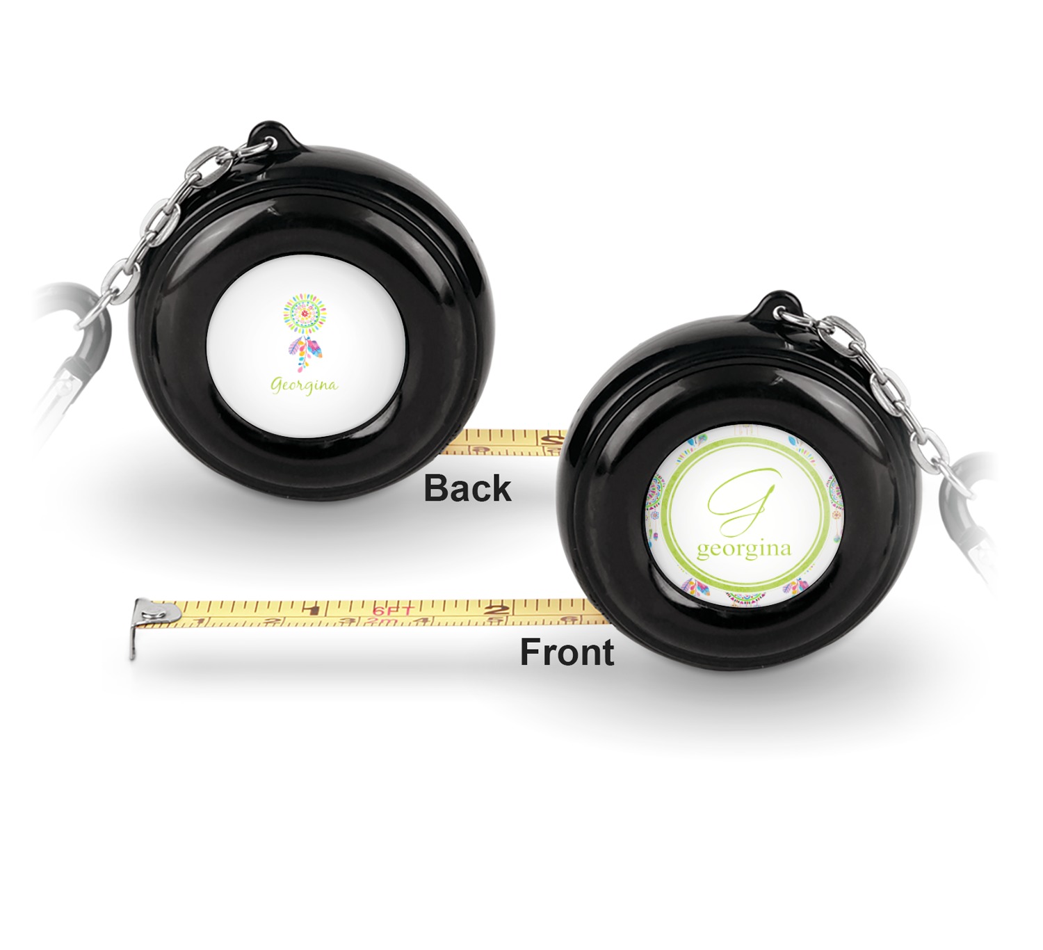 Now for personalizing! You get to personalize both sides of your tape measure. Have fun picking a cute pattern, font, or graphic! Make your personality shine through this fun tool.