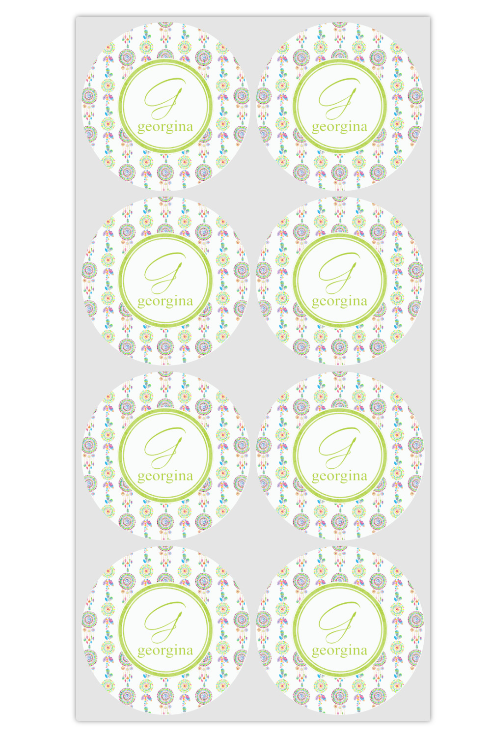 We used a simple round vintage label in a lime green and personalized it with a name an initial.