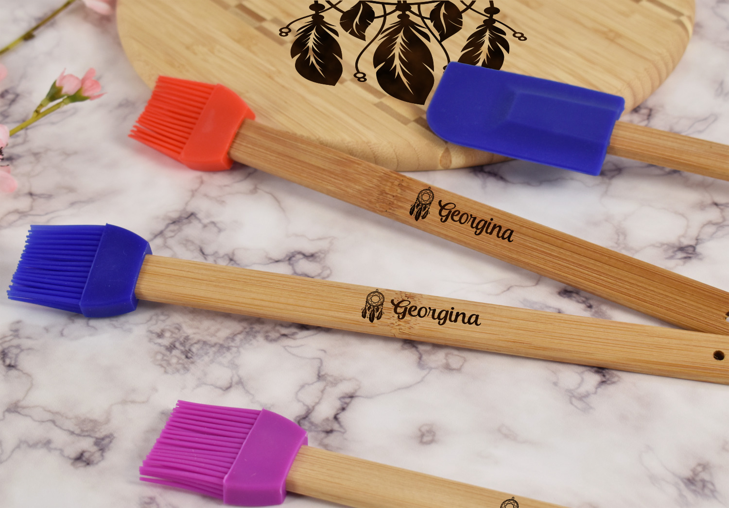 Available in 3 colors to match your kitchen décor - blue, purple and red - you are sure to find an option to perfectly fit into your kitchen tool selection. Choose your color then choose what you would like engraved onto the handle of your basting brush and we will laser engrave it for you to ensure it won't leave your kitchen space!