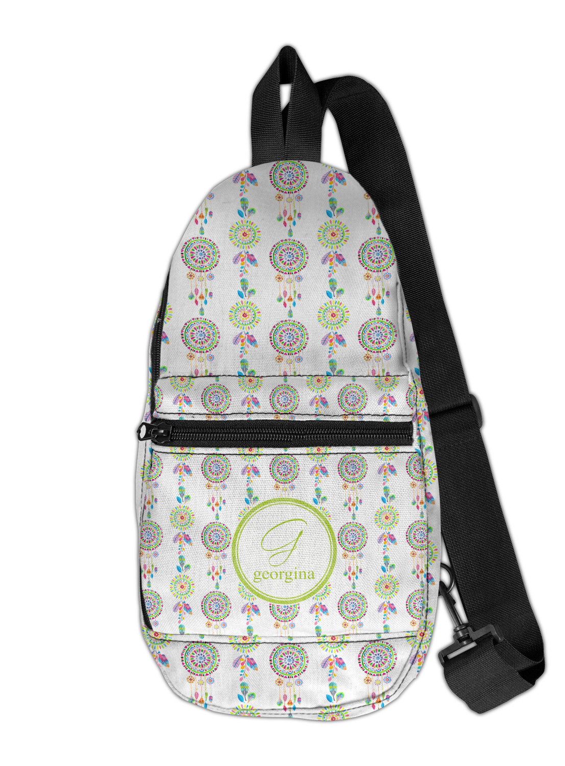 These sling bags are made from a durable polyester canvas. The fabric is printed with your design, then cut and hand sewn right here in the USA.