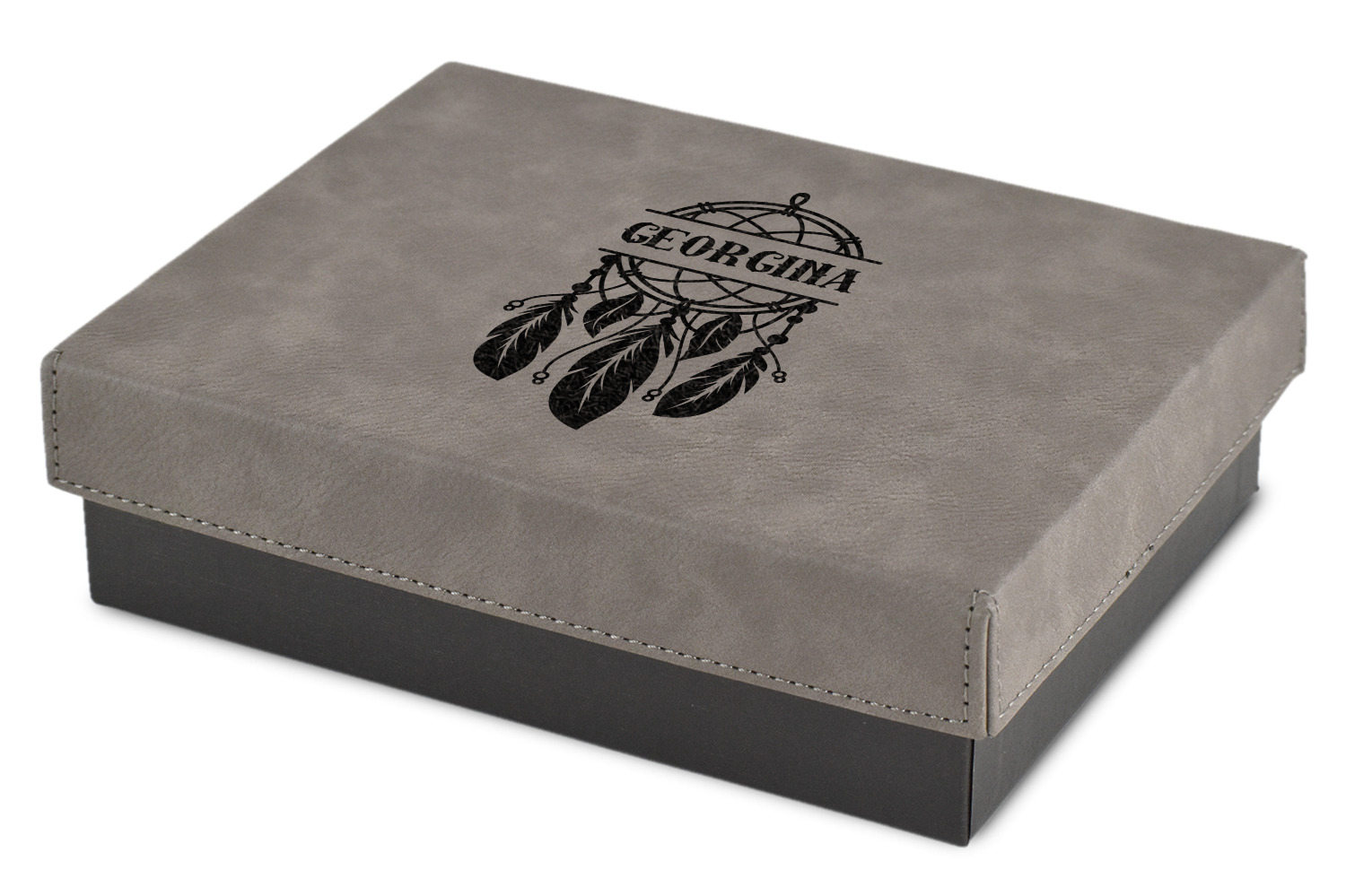 These gift boxes are available in 3 different sizes to accommodate various sized gifts. Available in gray as a neutral color for any occasion as well as to showcase your design boldly. Engraved with a laser this high quality paper board and faux leather gift box is unique and makes any gift stand out.