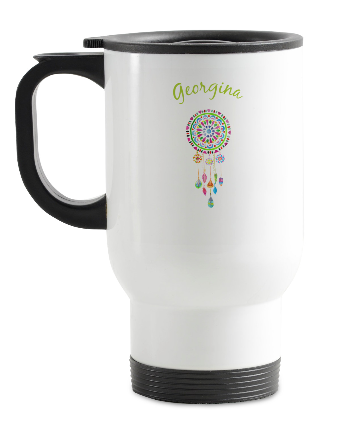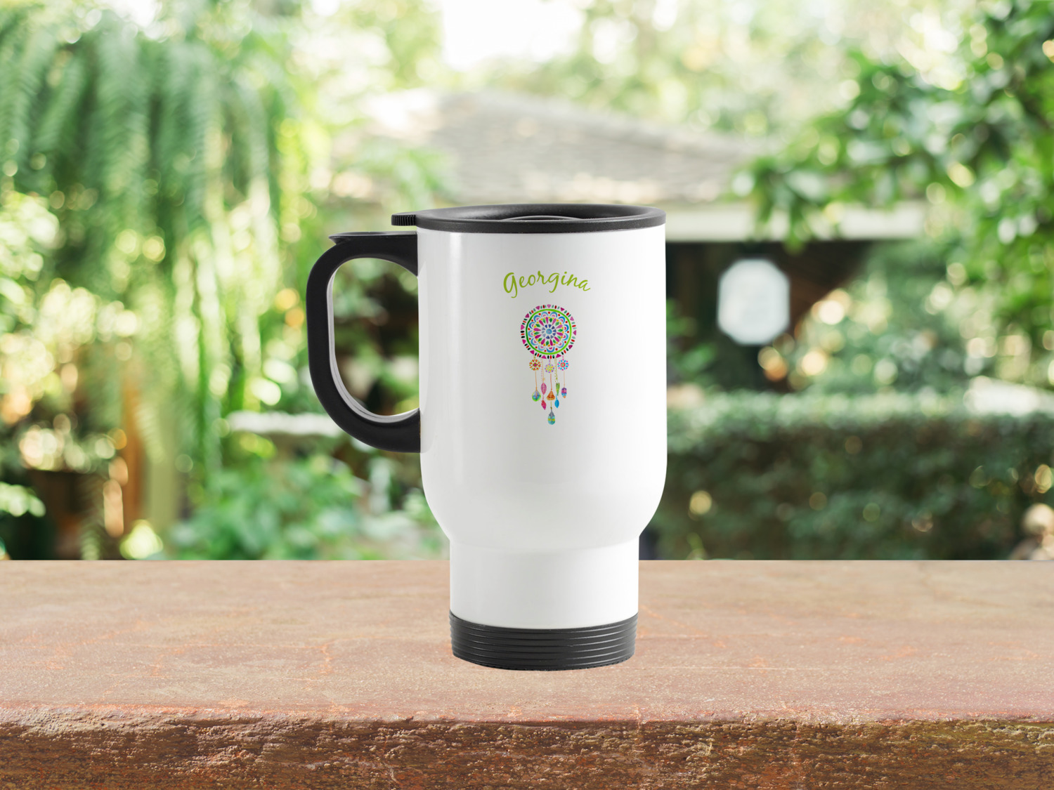 This stainless steel travel mug is a great way to take your favorite beverage with you when you're on the go!