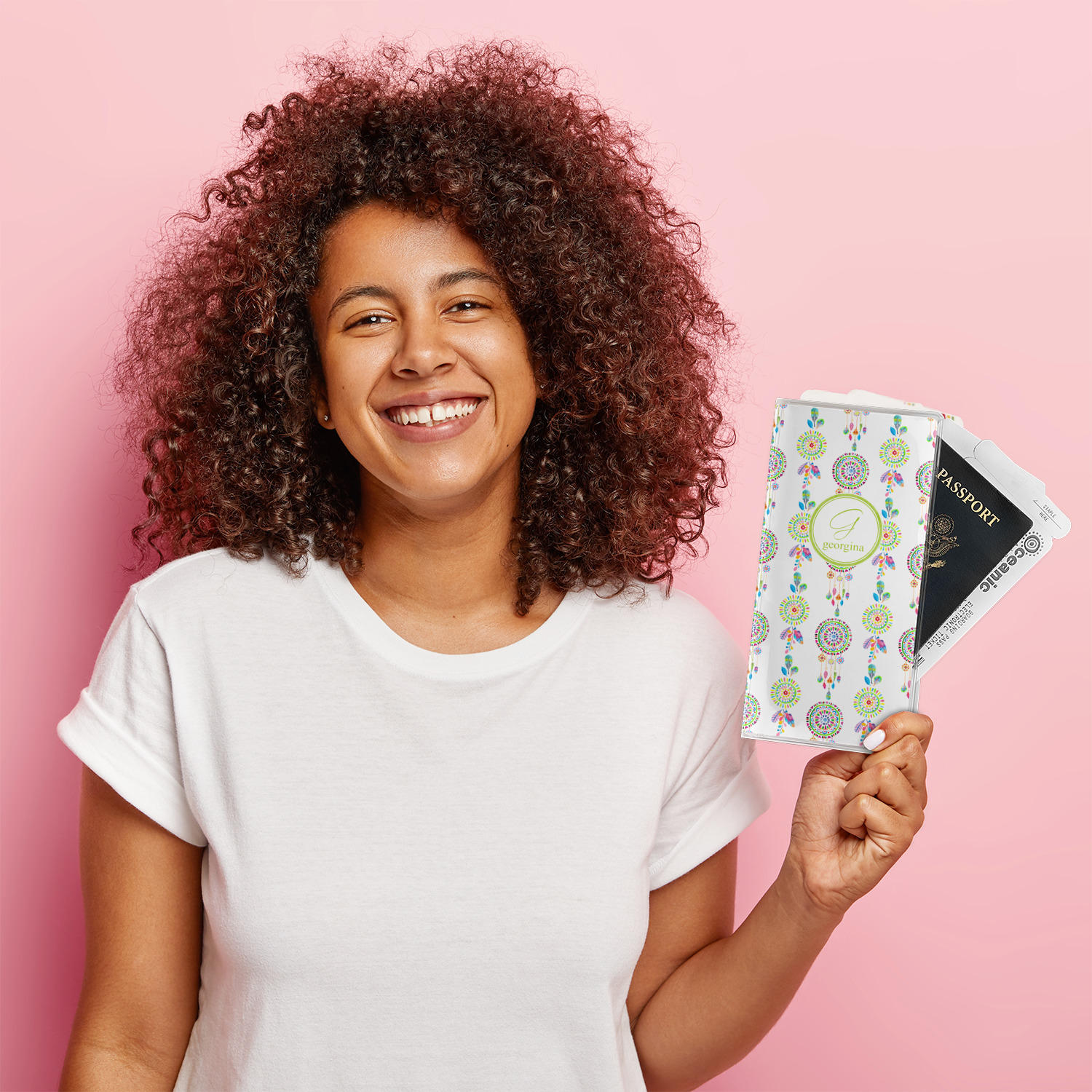 This document holder is really sturdy and has your personalized design inserted right behind all of your nifty pockets, so you can see it on the front and back covers. There are two large pockets and two shorter pockets inside. The larger pockets are tall enough to keep your boarding pass nice and straight. The smaller pockets (on top of the large pockets) are large enough to fit your passport, credit card, or ID.