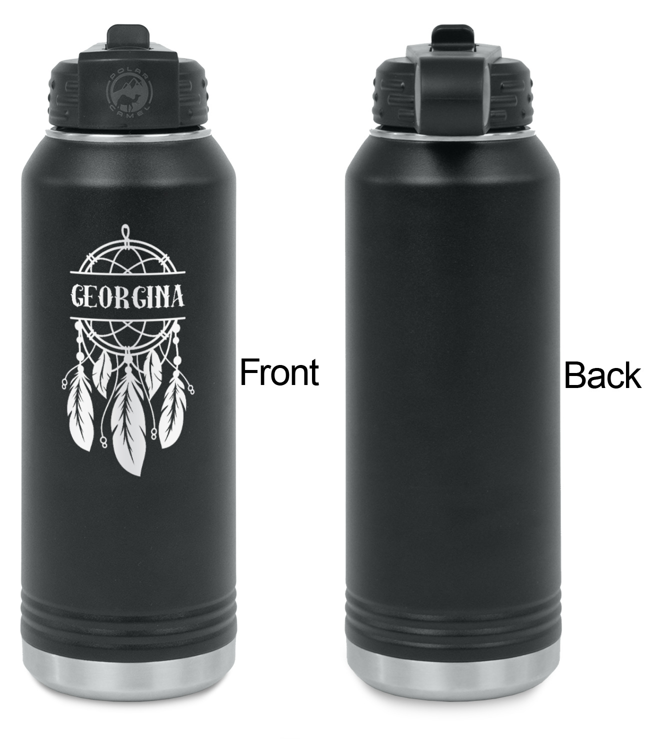 Our laser engraved stainless steel water bottles are designed for on the go lifestyle. These water bottles are perfect for the gym, the office, traveling, camping, hiking etc.
