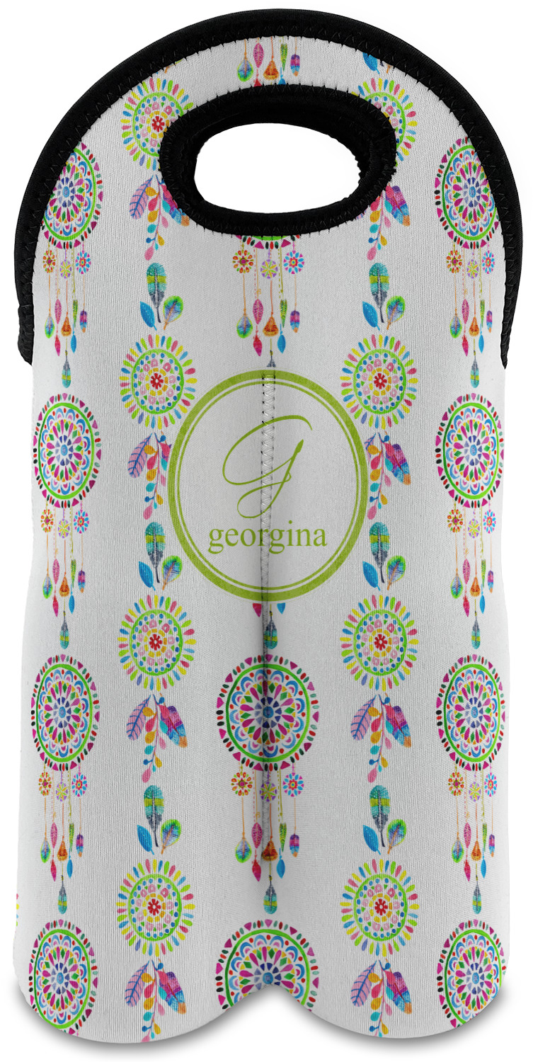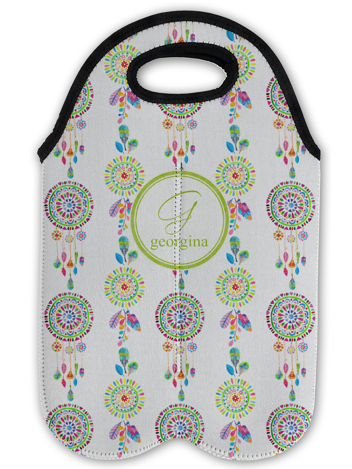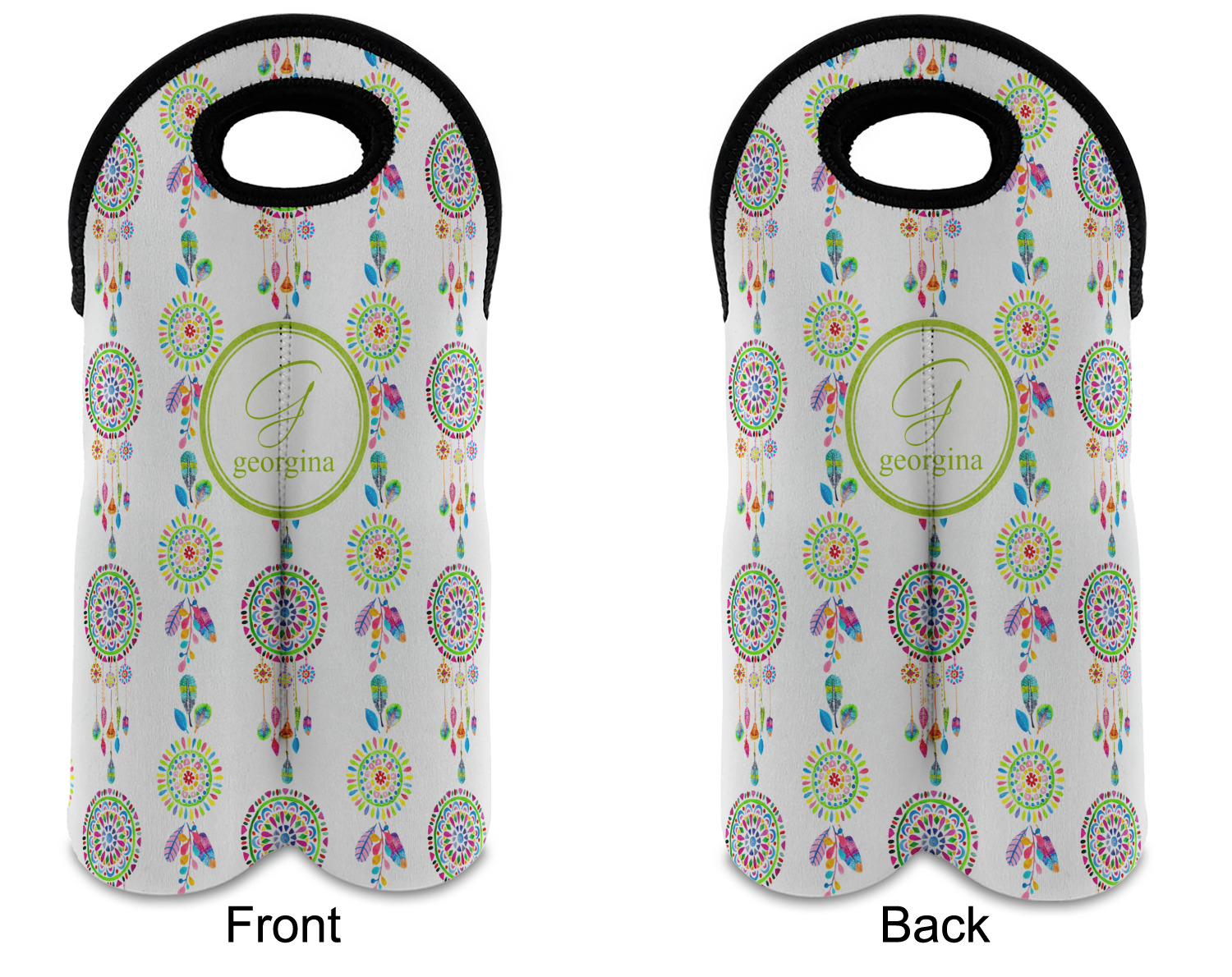 These tote bags are insulated to keep the bottles cold and have a stitched separation down the middle and double handles to keep the two bottles safe and secure during travels.
