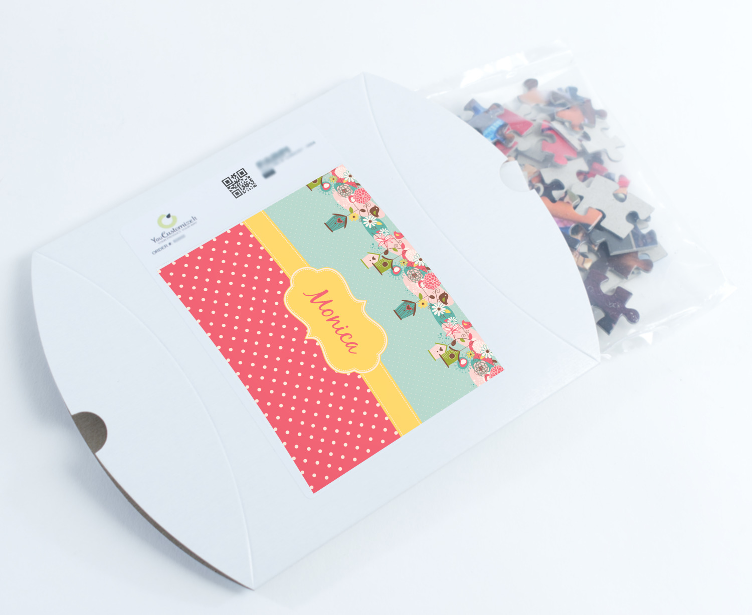 You can also upload your logo or art that you or your kids drew. To create more challenging jigsaw puzzles, you can create a pattern from with your logo or artwork. You can also add other elements such as text or personalization.