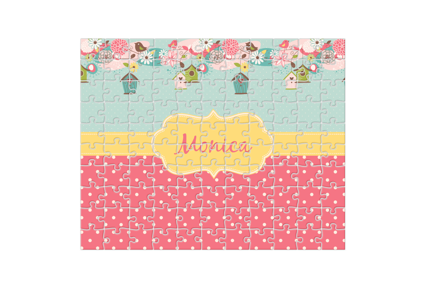 Depending on the look you are trying to achieve, you can add; a thematic pattern or background, with a photo in a frame and text or personalization to your puzzle. Basically if you can imagine it, you can design it!