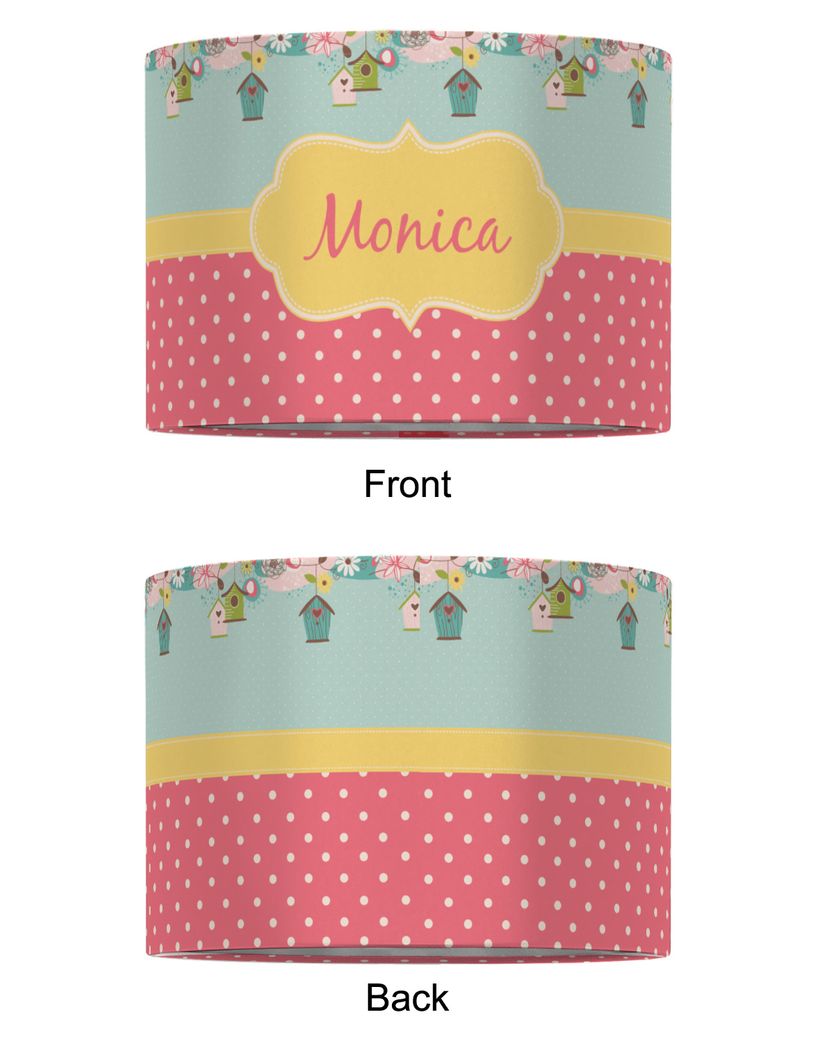 Our customized lamp shades also come in 3 different sizes: 8", 12" and 16", measuring at 8" in diameter by 6" tall, 12" in diameter by 8" tall, and 16" in diameter by 10" tall, respectively.