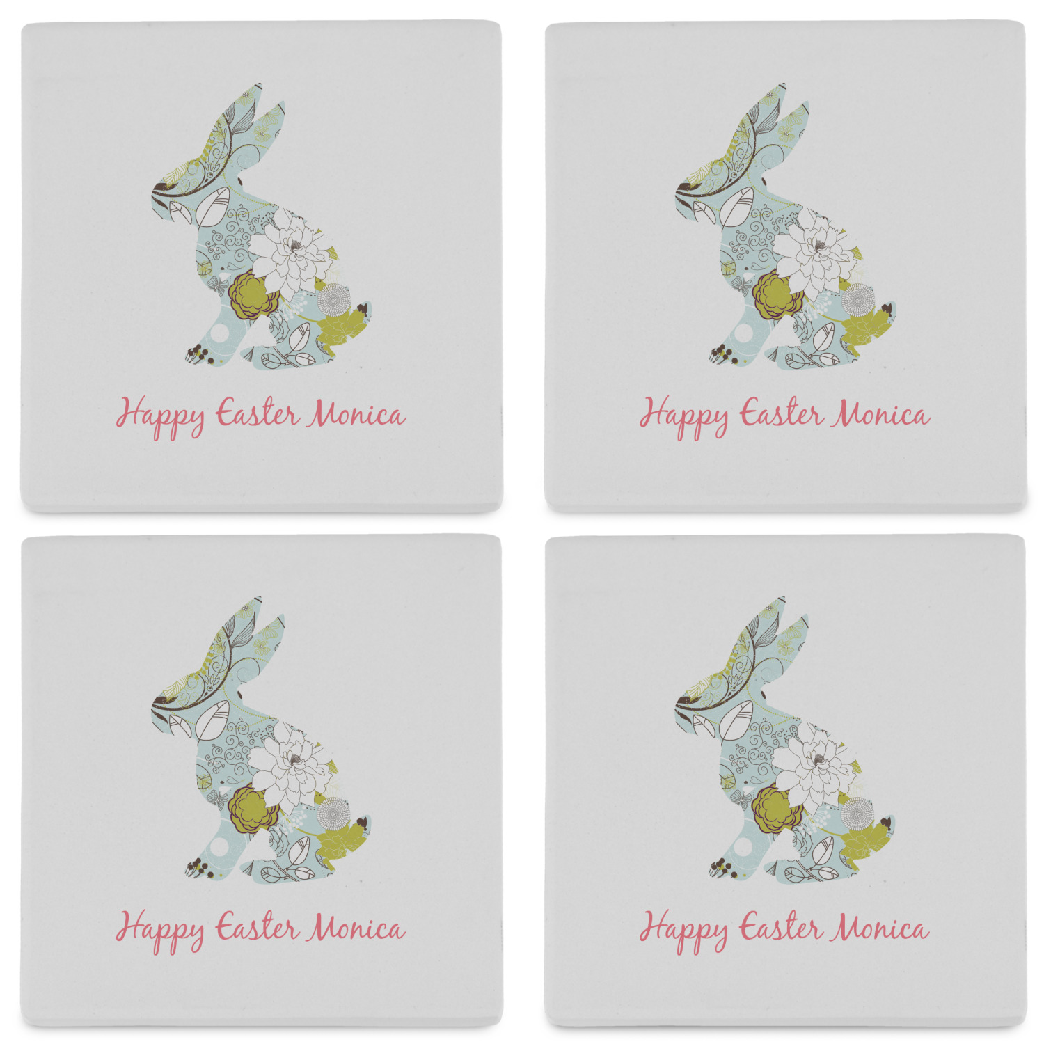 By default, the 4 coasters all have the same design on them, however, you can change that and have a different design on each one of the 4 coasters. The choice is yours.