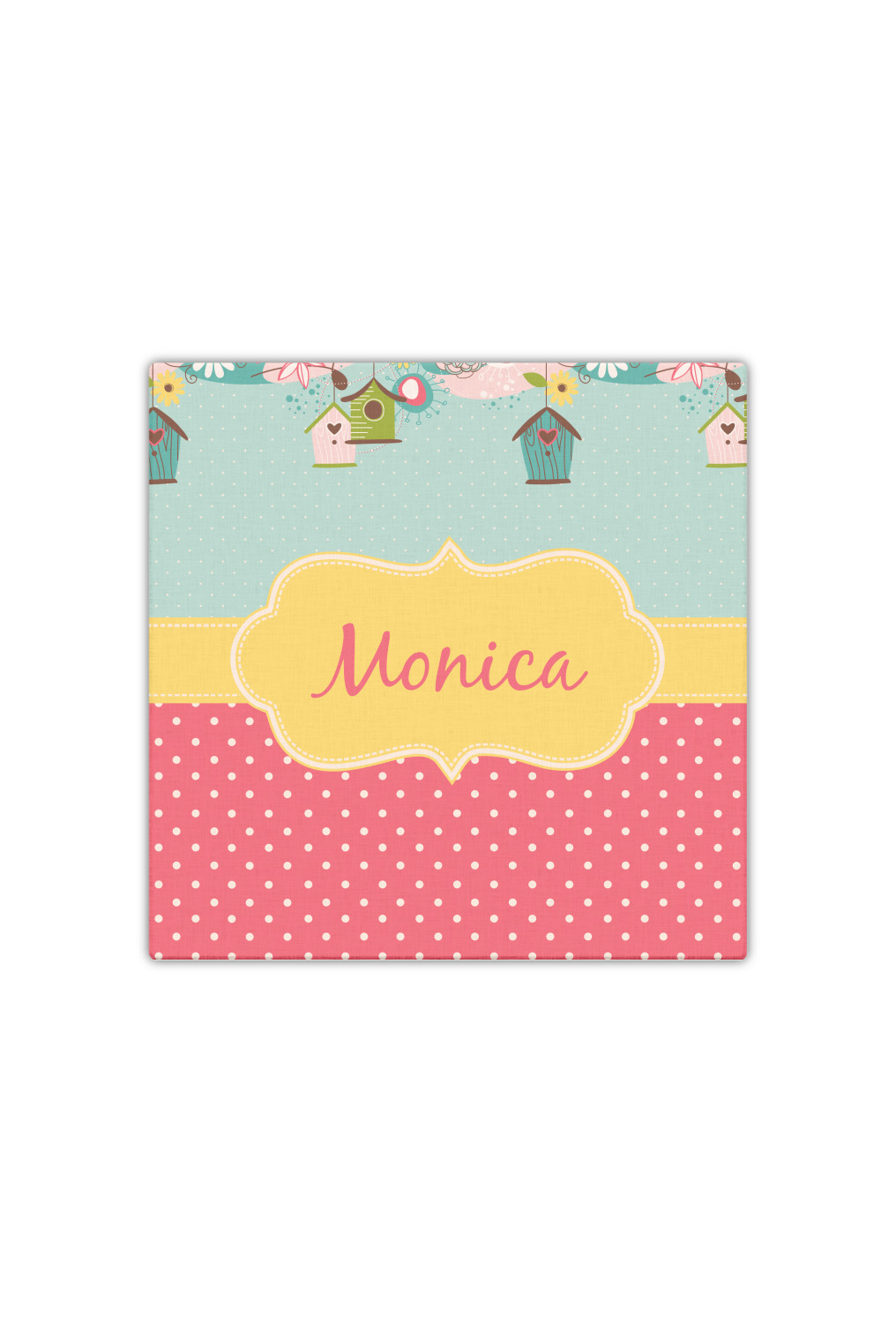 A perfect springtime pattern, whether specifically for Easter, or for just any lovely day. Complete with flowers, and the most adorable birdhouses, this pattern is sure to bring a smile to everyone's face. The design has a classic yellow ribbon, with a decorative label. Add your name for that personal touch to pull the entire design together.