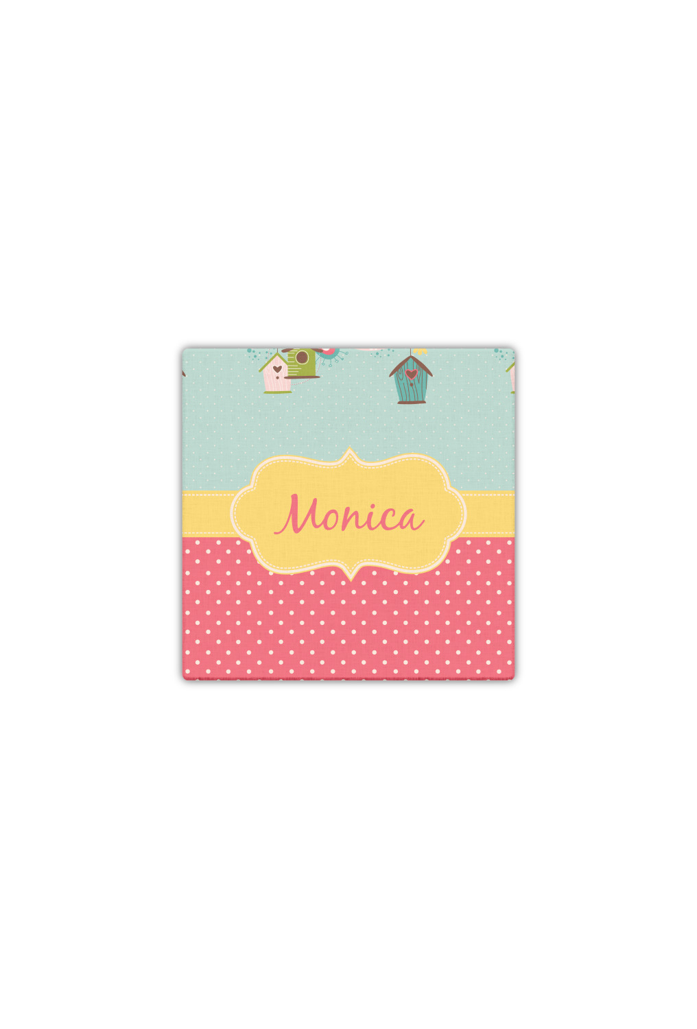 A perfect springtime pattern, whether specifically for Easter, or for just any lovely day. Complete with flowers, and the most adorable birdhouses, this pattern is sure to bring a smile to everyone's face. The design has a classic yellow ribbon, with a decorative label. Add your name for that personal touch to pull the entire design together.