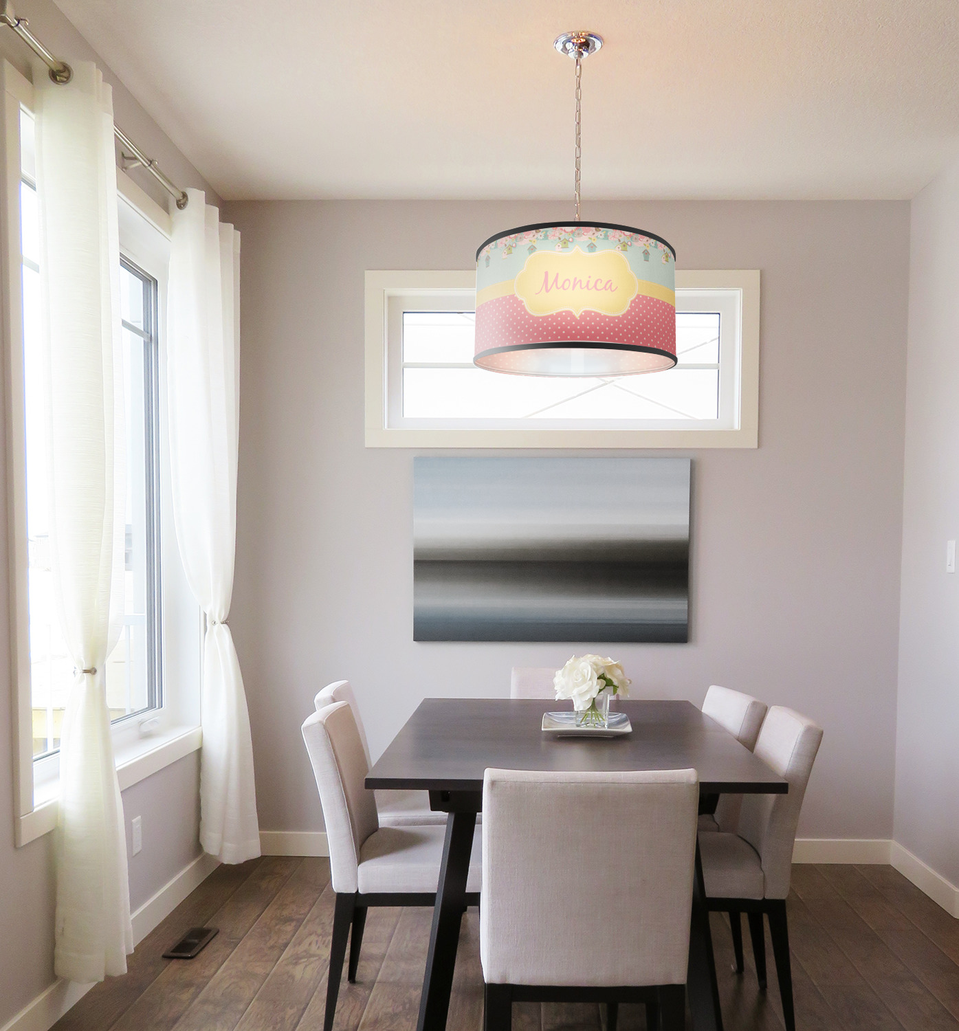 Add a bright splash of color and personality to any room in your home with one of our drum lampshades! These lampshades are the perfect addition to your homes decor; they will easily dress up any of your light fixtures. Customize a few and hang them over your dining area, your kitchen bar, or a cozy reading nook! If youre not looking for a hanging lampshade, you can easily remove the cord and use it on a floor lamp in your home as well!