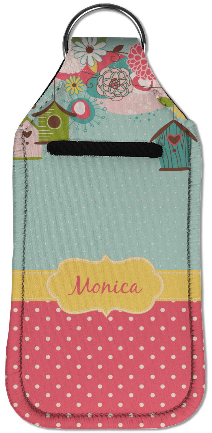 Each hand sanitizer holder comes with its own empty travel-sized, refillable hand sanitizer sure to fit snug in your customized sanitizer case! Our hand sanitizer cases are a durable, yet soft neoprene material sure to last any daily activities or travel agenda. Customize and personalize a hand sanitizer bottle holder with one of our two sizes - small (4.25" x 2.25") or large (5.5" x 2.5"). Each travel sanitizer holder comes with a keyring for attachment on bags, keys, or more!