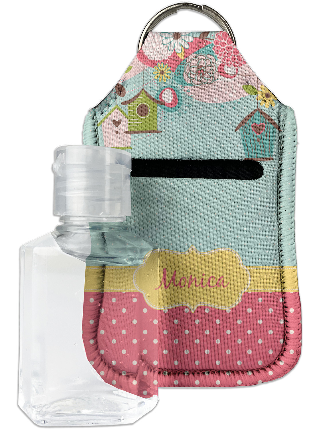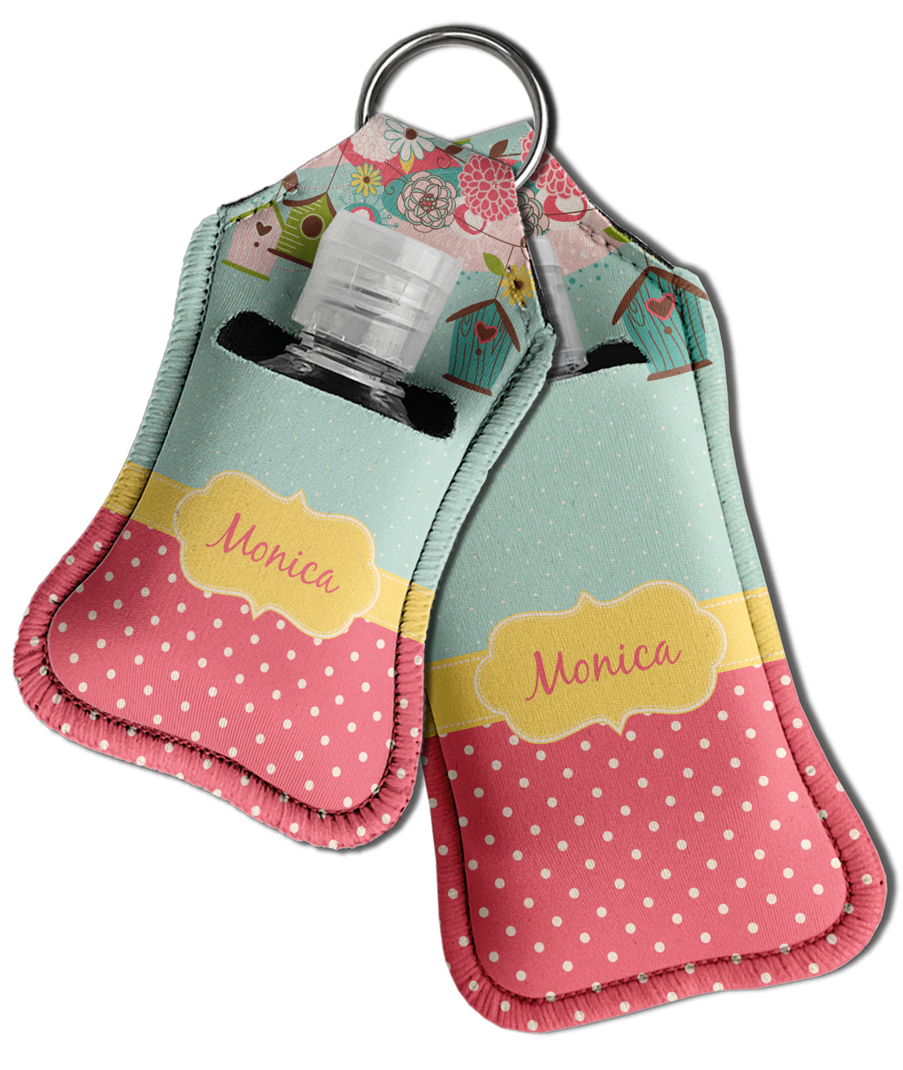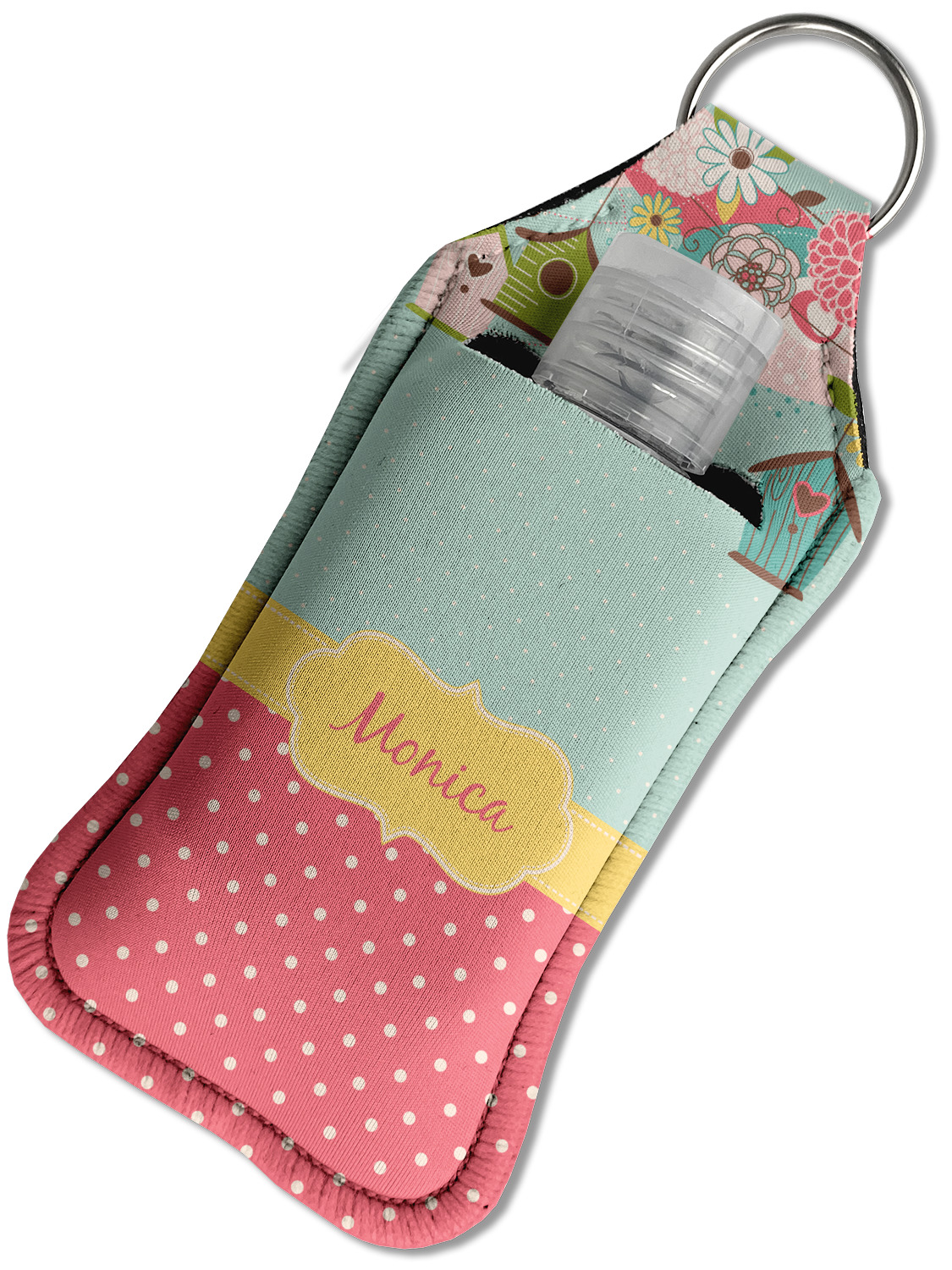 Each hand sanitizer holder comes with its own empty travel-sized, refillable hand sanitizer sure to fit snug in your customized sanitizer case! Our hand sanitizer cases are a durable, yet soft neoprene material sure to last any daily activities or travel agenda. Customize and personalize a hand sanitizer bottle holder with one of our two sizes - small (4.25" x 2.25") or large (5.5" x 2.5"). Each travel sanitizer holder comes with a keyring for attachment on bags, keys, or more!