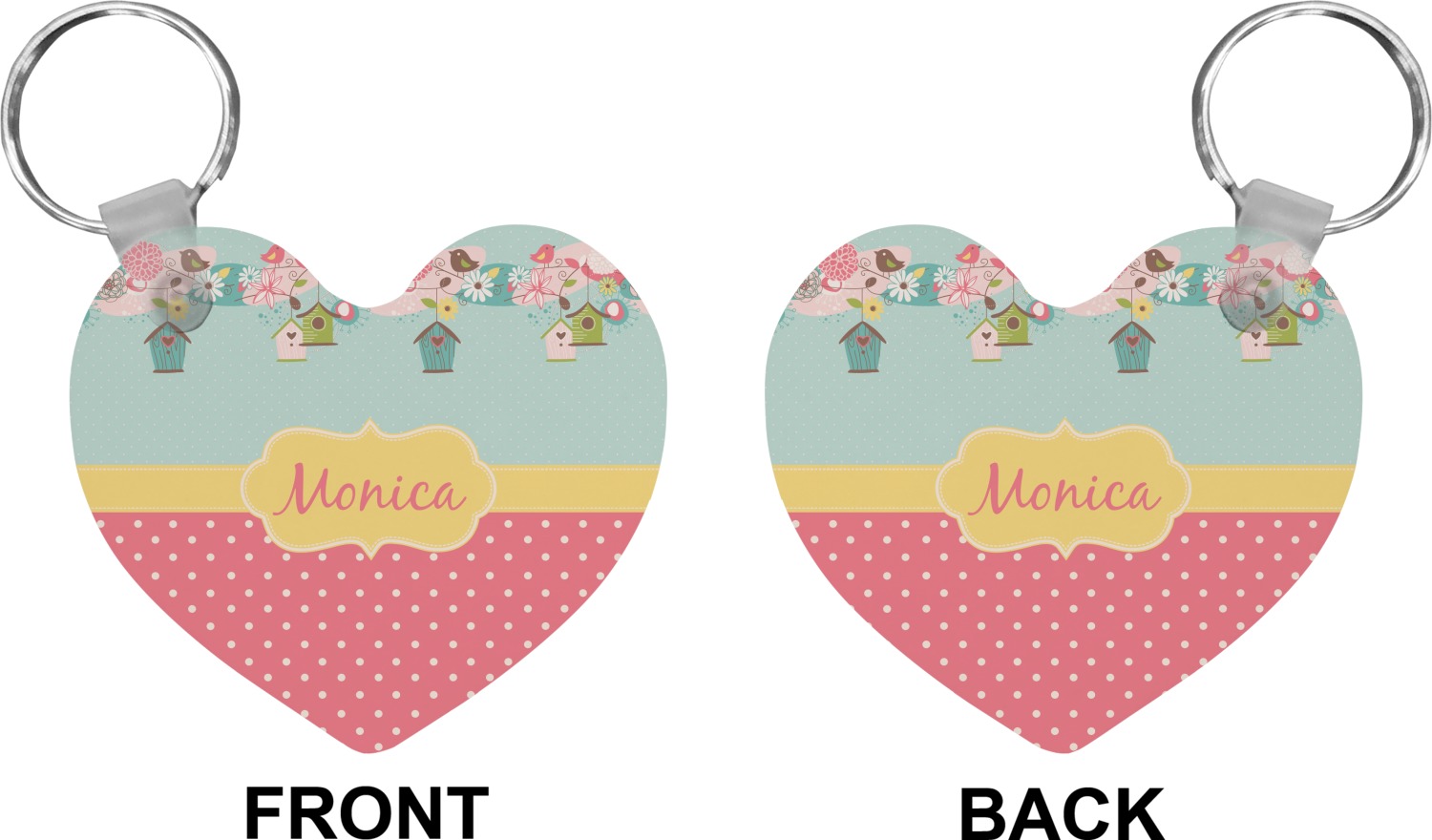 Our personalized keychains attach to the included metal, split key ring with a plastic, removable snap. Since a metal ring is included with your purchase, you have the liberty to keep your keys together on the ring, with or without your unique keychain. We offer this keychain in three different shapes: circle, heart, or diamond. We print your personalized design(s) on both sides of the key chain, and the surface has a glossy, reflective finish that only emphasizes your design. Each keychain is approximately 2.25 by 2.25 inches.