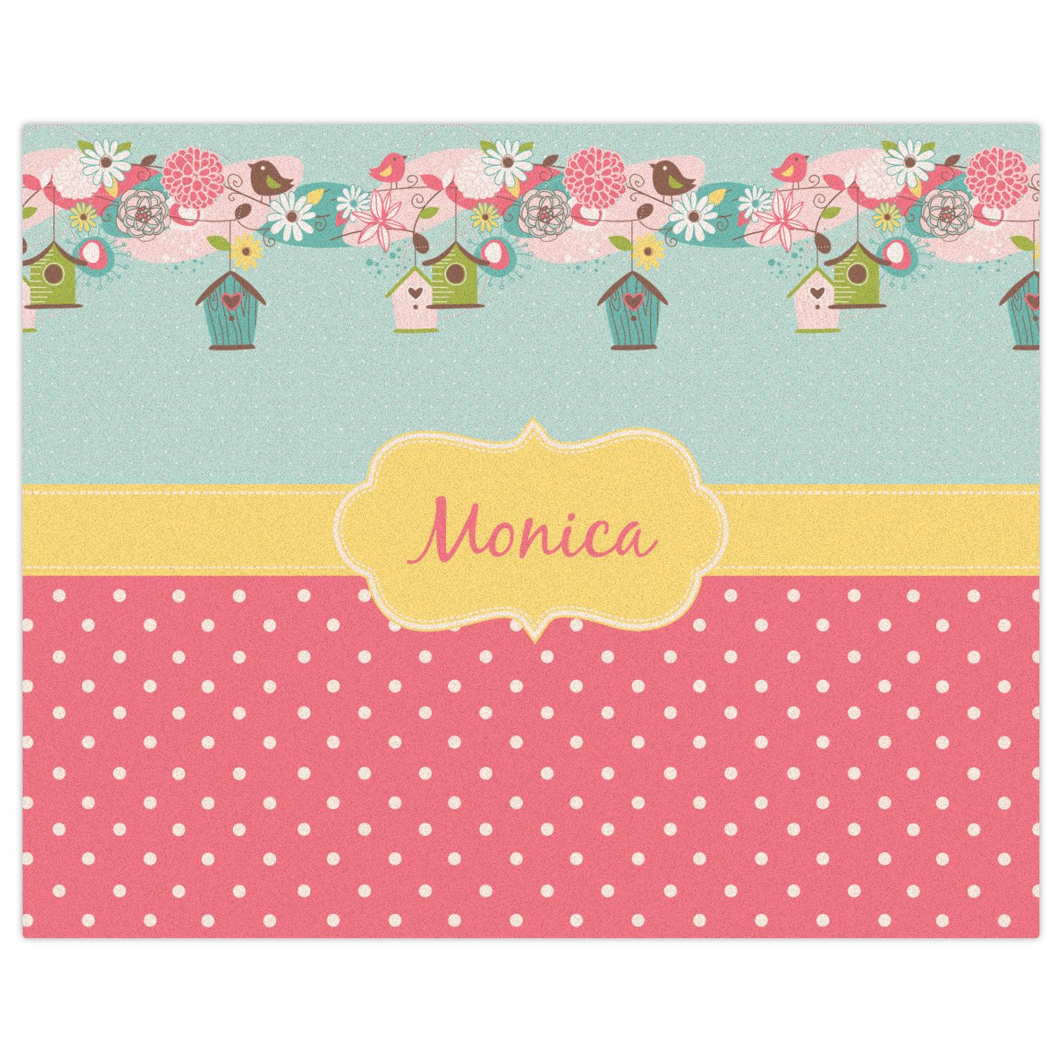 A perfect springtime pattern, whether specifically for Easter, or for just any lovely day. Complete with flowers, and the most adorable birdhouses, this pattern is sure to bring a smile to everyone's face. The design has a classic yellow ribbon, with a decorative label. Add your name for that personal touch to pull the entire design together.