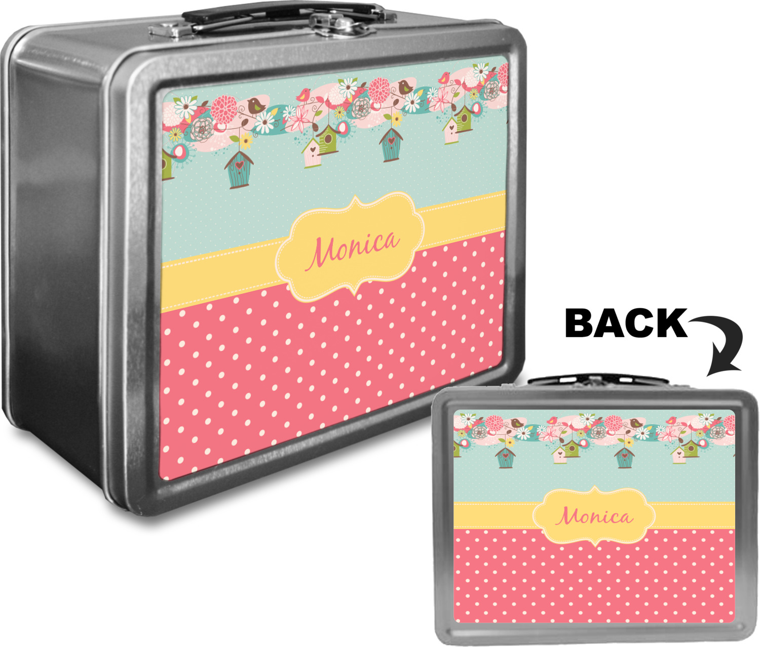 When customized, these boxes can also serve as a unique keepsake box! We print your design on both the front and back of this box, using a high quality matte vinyl, with waterproof inks that withstand the test of time. The designs are then machine cut, and adhered to the sides of the metal lunch container.