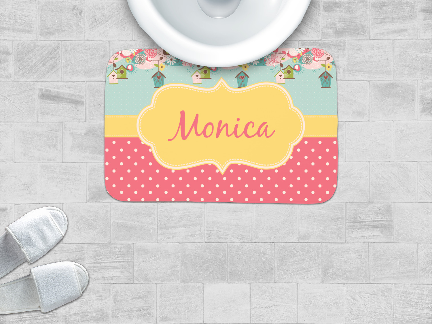 Treat yourself by stepping out of your shower or bath onto one of our lavish memory foam bath mats! These personalized bath mats will add a charming splash of color to any of your bathrooms! Design them to coordinate with your bathroom's current decor, or with vibrant patterns and colors so it can serve as an accent piece on your floor!