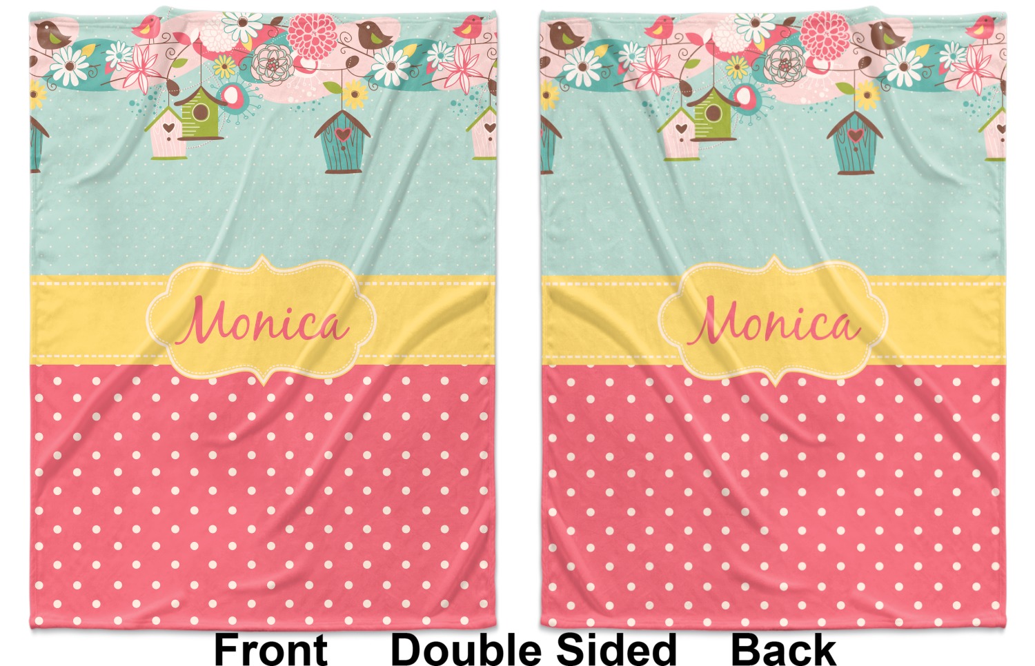 Blankets can be customized on a single side or both sides; you can get the same or different designs on the two sides. The choice is yours! You can even design it vertically OR horizontally.