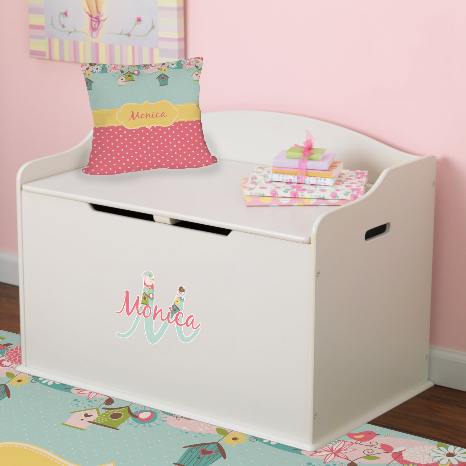 A perfect springtime pattern, whether specifically for Easter, or for just any lovely day. Complete with flowers, and the most adorable birdhouses, this pattern is sure to bring a smile to everyone's face. The design has a classic yellow ribbon, with a decorative label. Add your name for that personal touch to pull the entire design together.