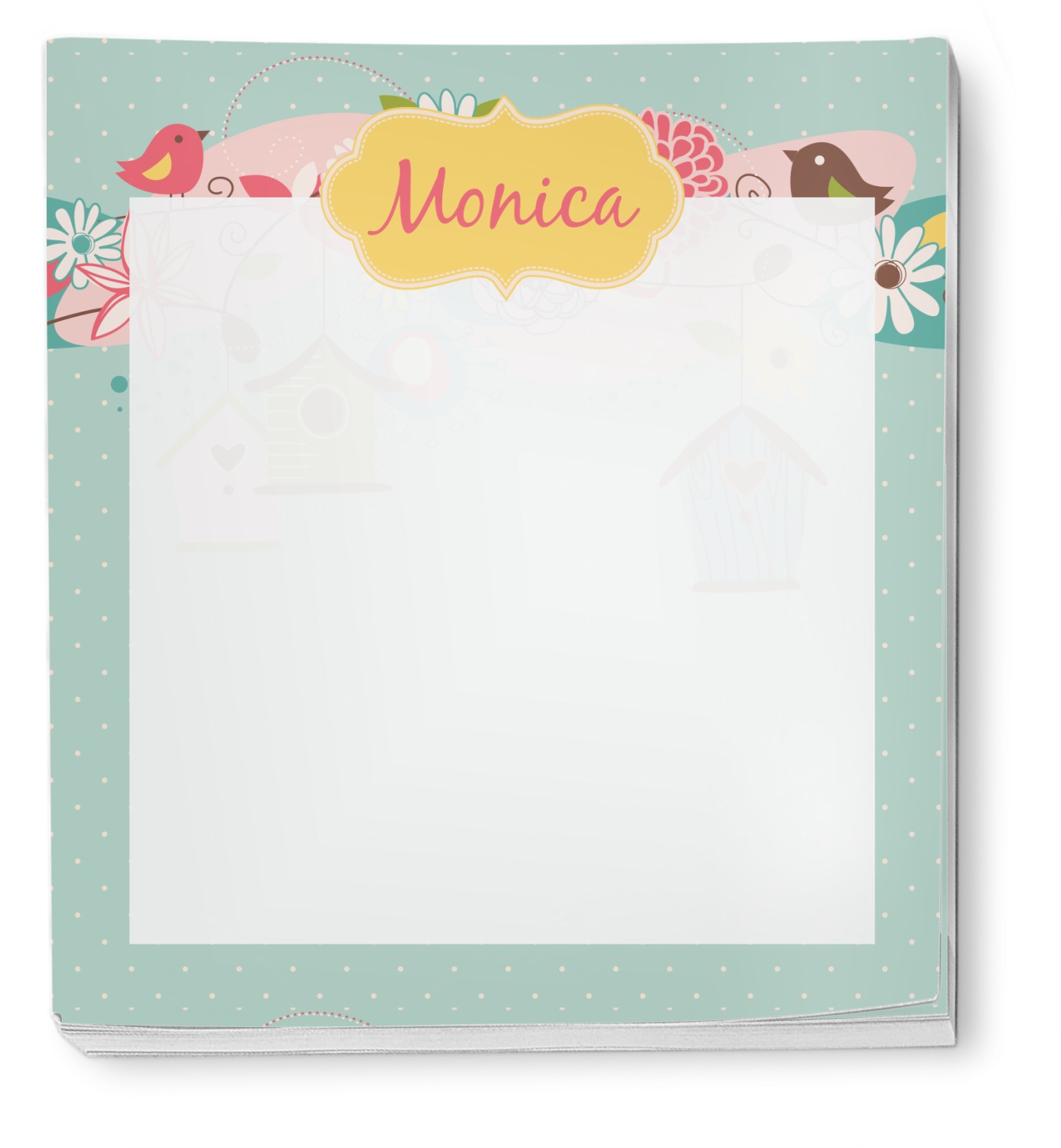 Your custom notepad features 50 sheets of thick, white paper, with your customization in the background and the edges. At approximately 6" x 5.5", these personalized memo pads are slightly larger than your average notepad. The individual notes tear easily from binding, which allows for quick, convenient, note-taking.