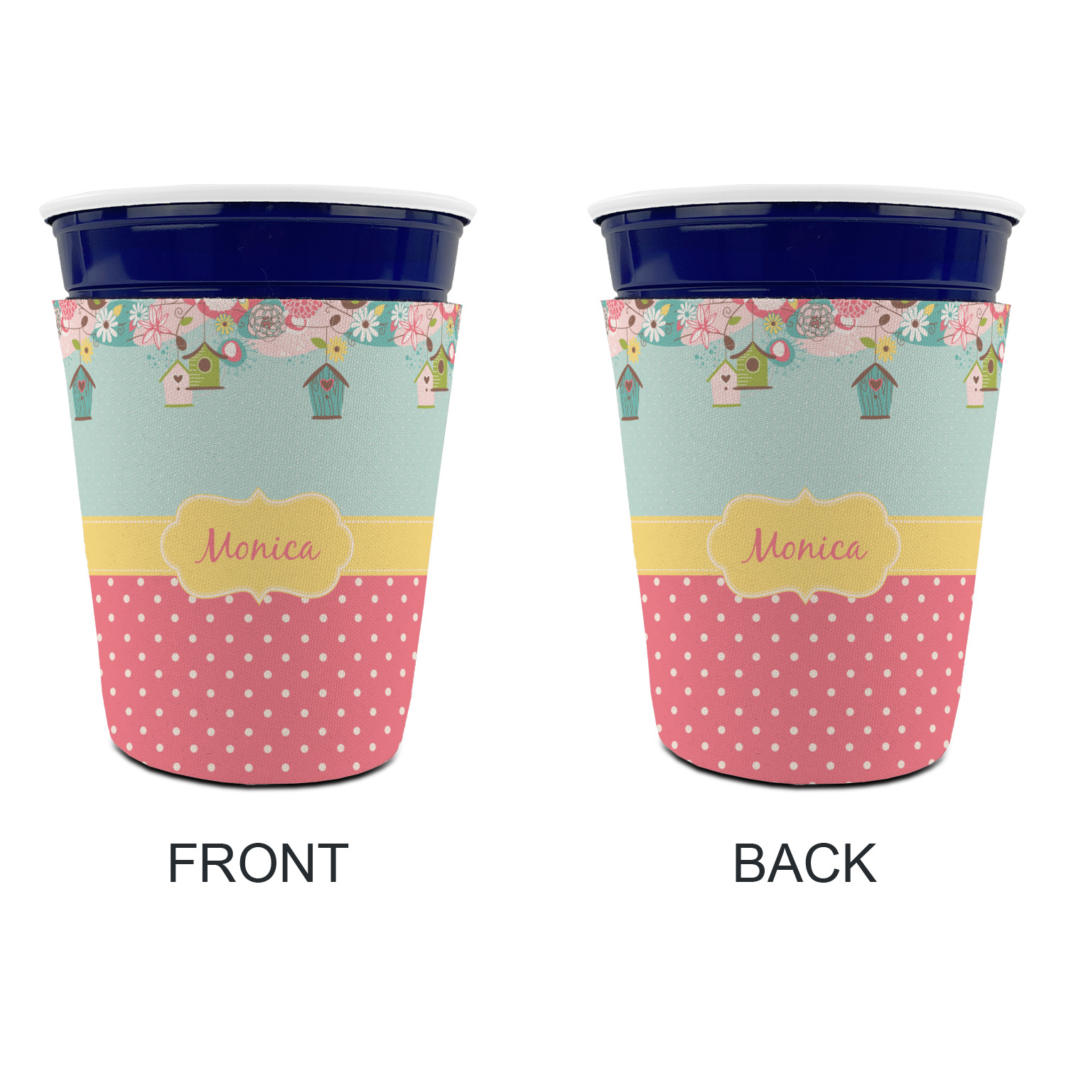 Made from neoprene with a polyester outer fabric and sewn seams, these premium quality party cup sleeves are very durable and will hold up to heavy use. They are available in 2 styles - with a bottom or just a sleeve to go around the outside of the tapered cup. The sleeve covers are about 4" tall and cover about 90% of the classic 16 oz. Solo cup.