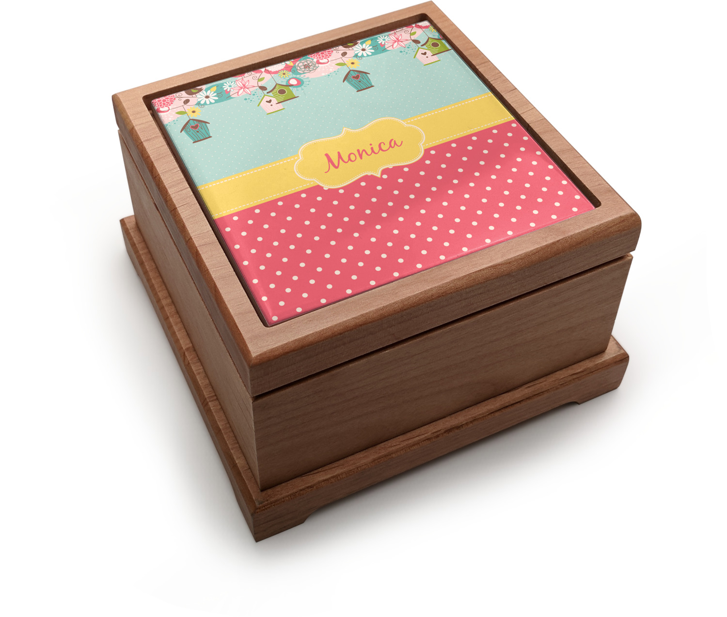 Our beautiful pet urns, shaped as decorative square boxes, are built from fine, red alder wood. The urn's bottom unscrews easily, with a screwdriver, allowing you to safely place your pet's ashes inside. The inner dimensions of the urn measure at 3.5" long, 3.5" wide, and 2" deep. The external base of the urn measures at 5.5" x 5.5", while its height is 3.5". We display your pet's picture, dates of living, or any other desired customization atop the ceramic tile that covers the top of the urn.