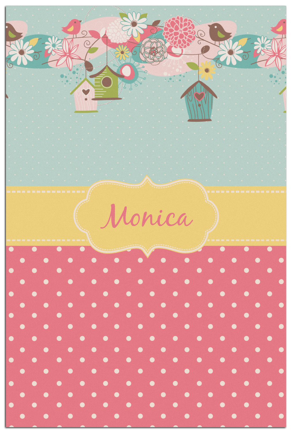 A perfect springtime pattern, whether specifically for Easter, or for just any lovely day. Complete with flowers, and the most adorable birdhouses, this pattern is sure to bring a smile to everyone's face. The design has a classic yellow ribbon, with a decorative label. Add your name for that personal touch to pull the entire design together.